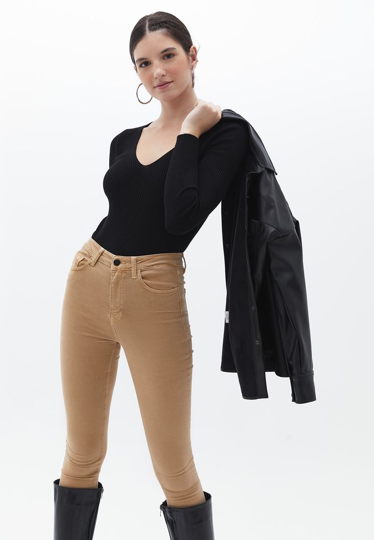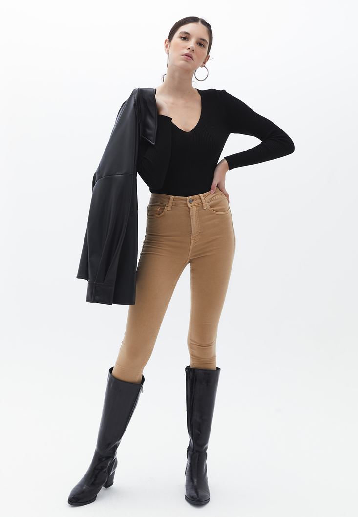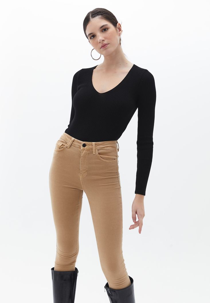 Fit: Bodycon / Yaka: V-Neck / Kol: Long Sleeve