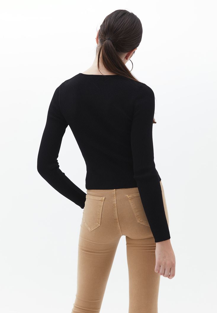 Siyah V Yaka Triko Kazak