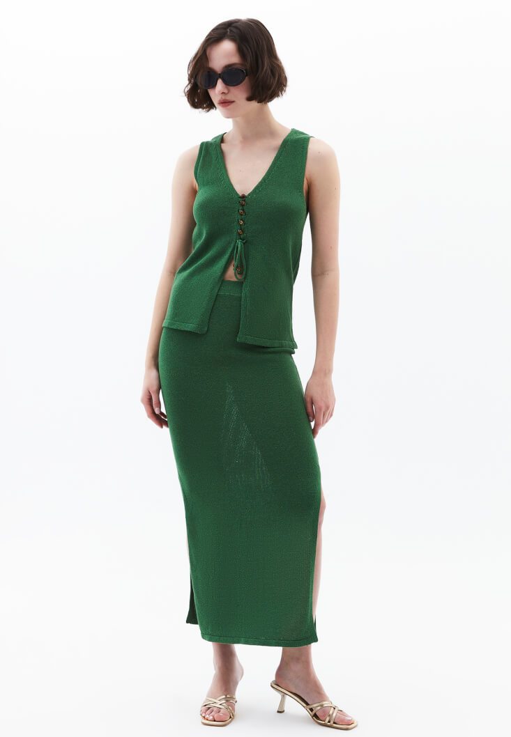 Sade ama güçlü bir duruş arıyorsanız, bu triko yelek gardırobunuzun vazgeçilmezi olacak. 💚