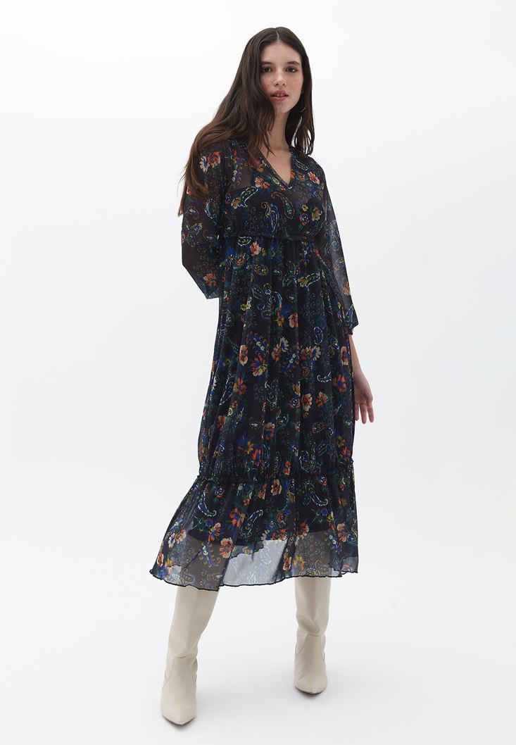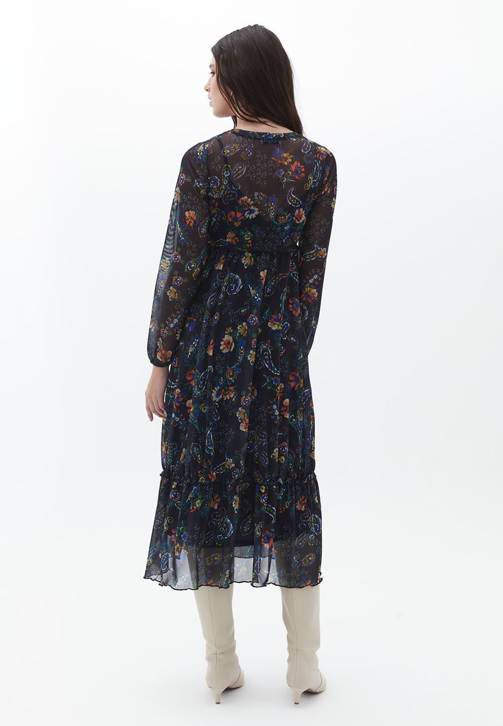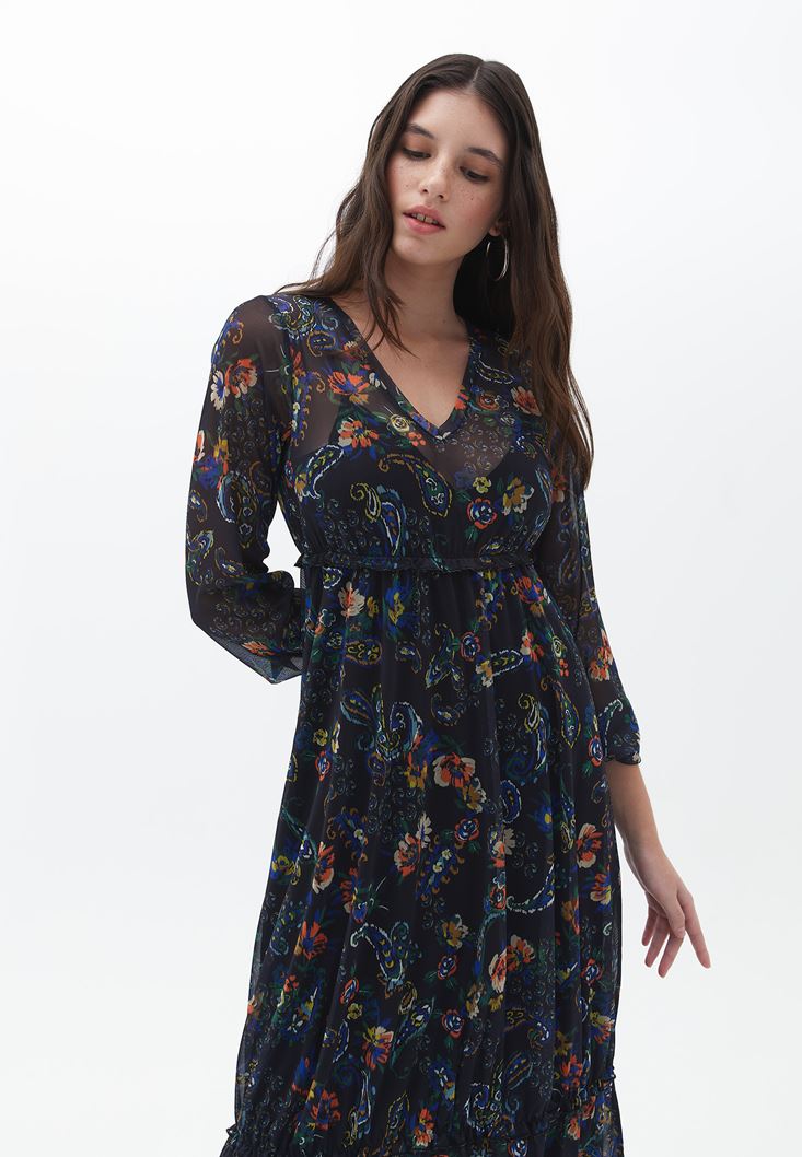 • Bayan Çok Renkli V Yaka Tül Elbise