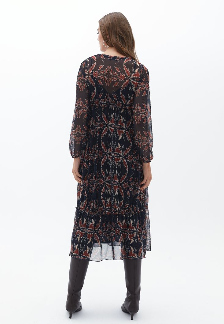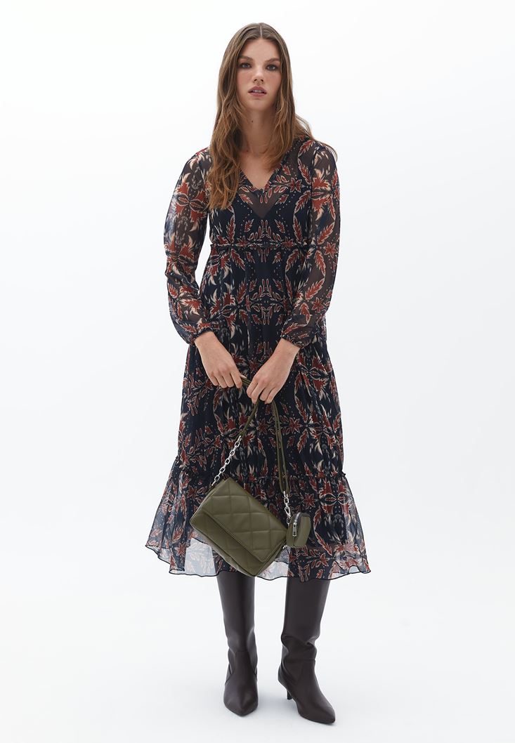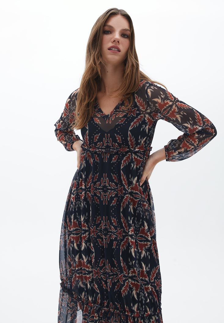 Çok Renkli V Yaka Tül Elbise