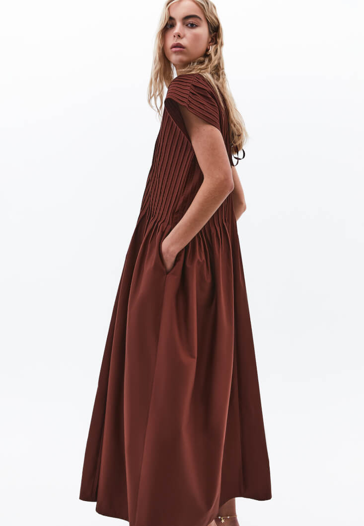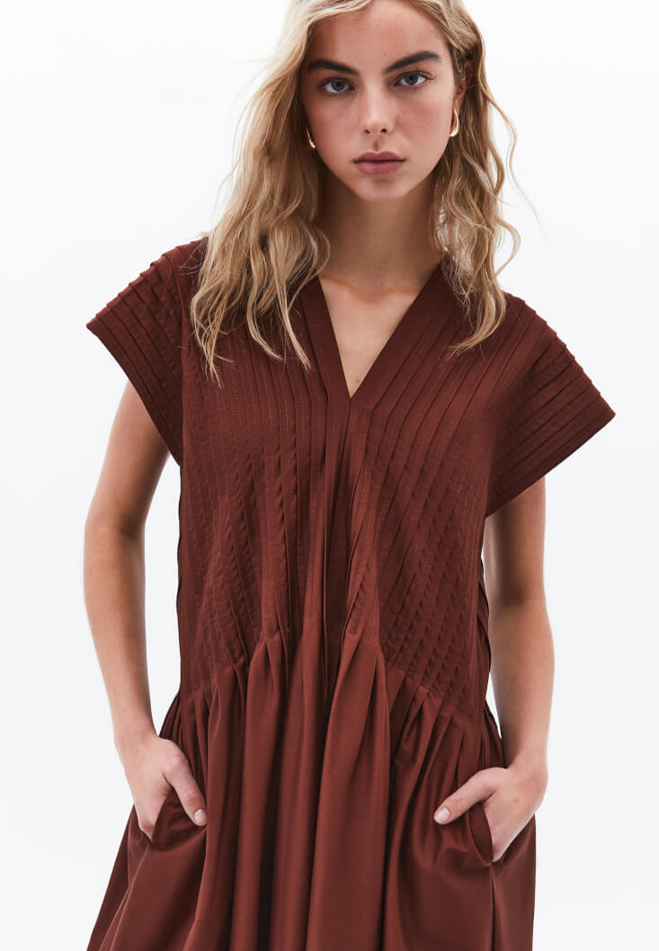Modern sadelikten ilham alan bu elbise ile doğal ve zarif bir duruş sizi bekliyor. ☀️🌾