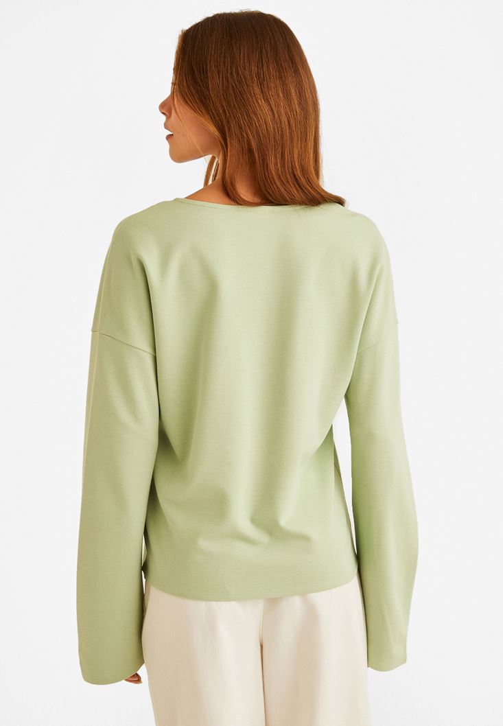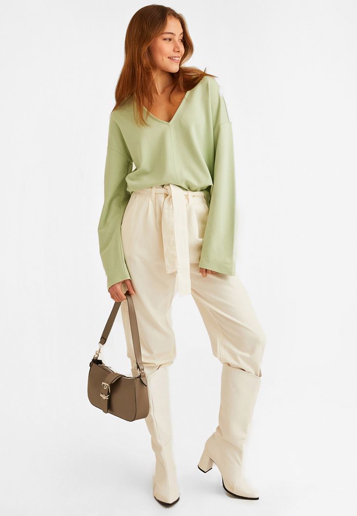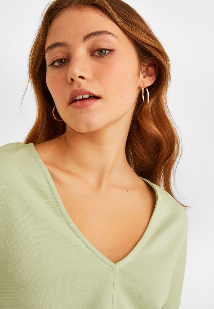 • Bayan Yeşil V Yaka Uzun Kollu Bluz