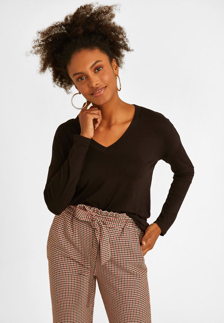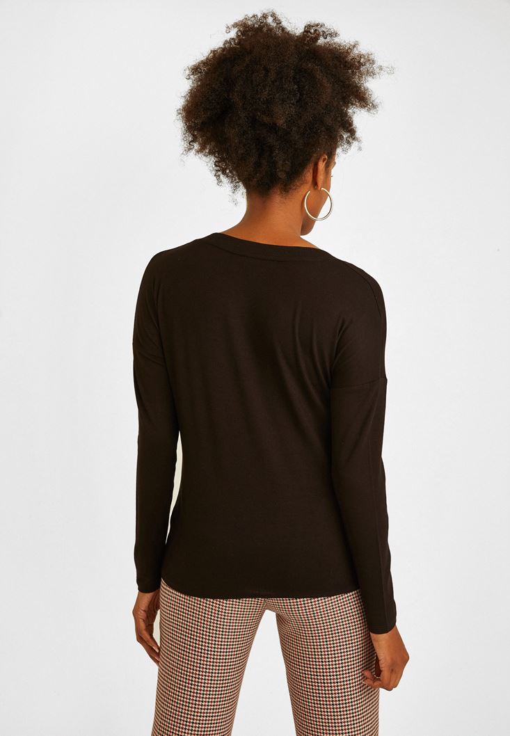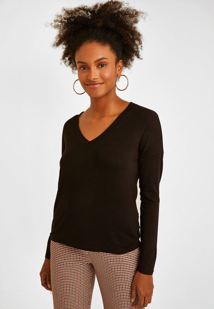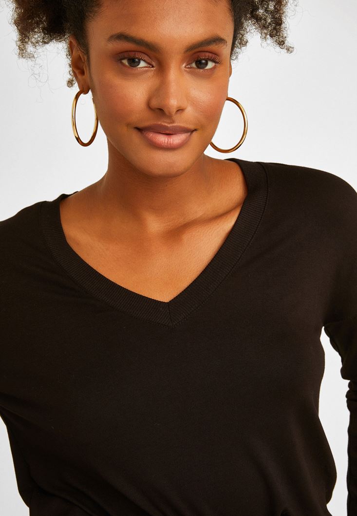 • Bayan Siyah V Yaka Uzun Kollu Tişört