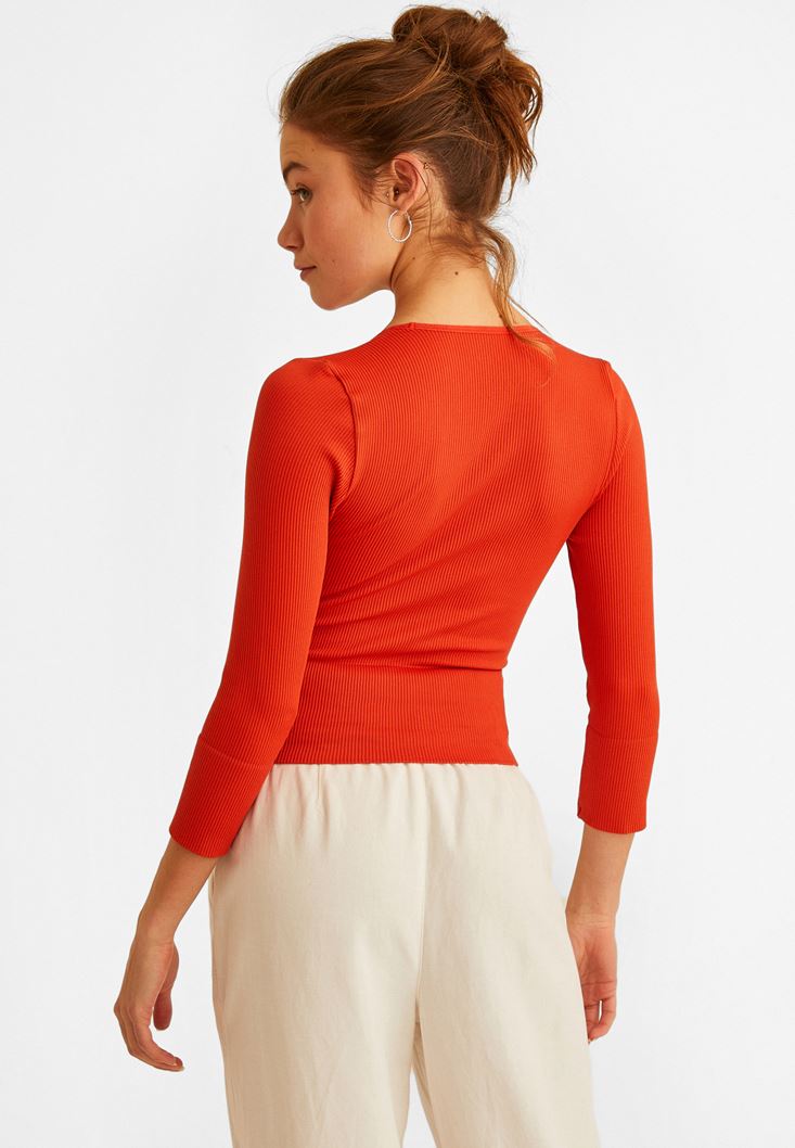 • Bayan Kırmızı V Yaka Uzun Kollu Tişört