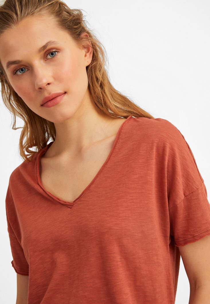 • Bayan Kahverengi V Yaka Uzun Tişört