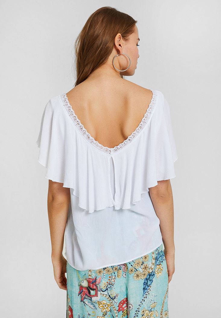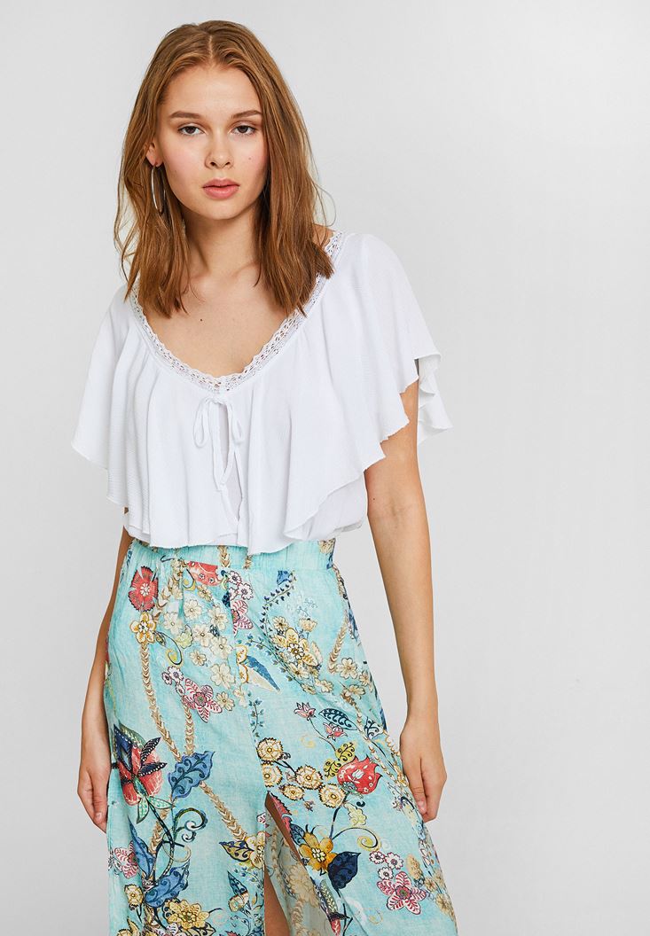 • Bayan Beyaz V Yaka Volan Detaylı Bluz