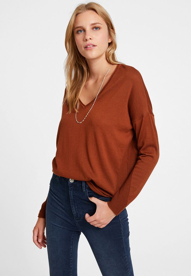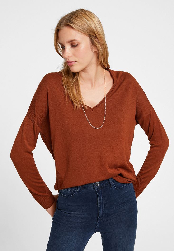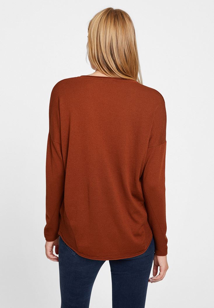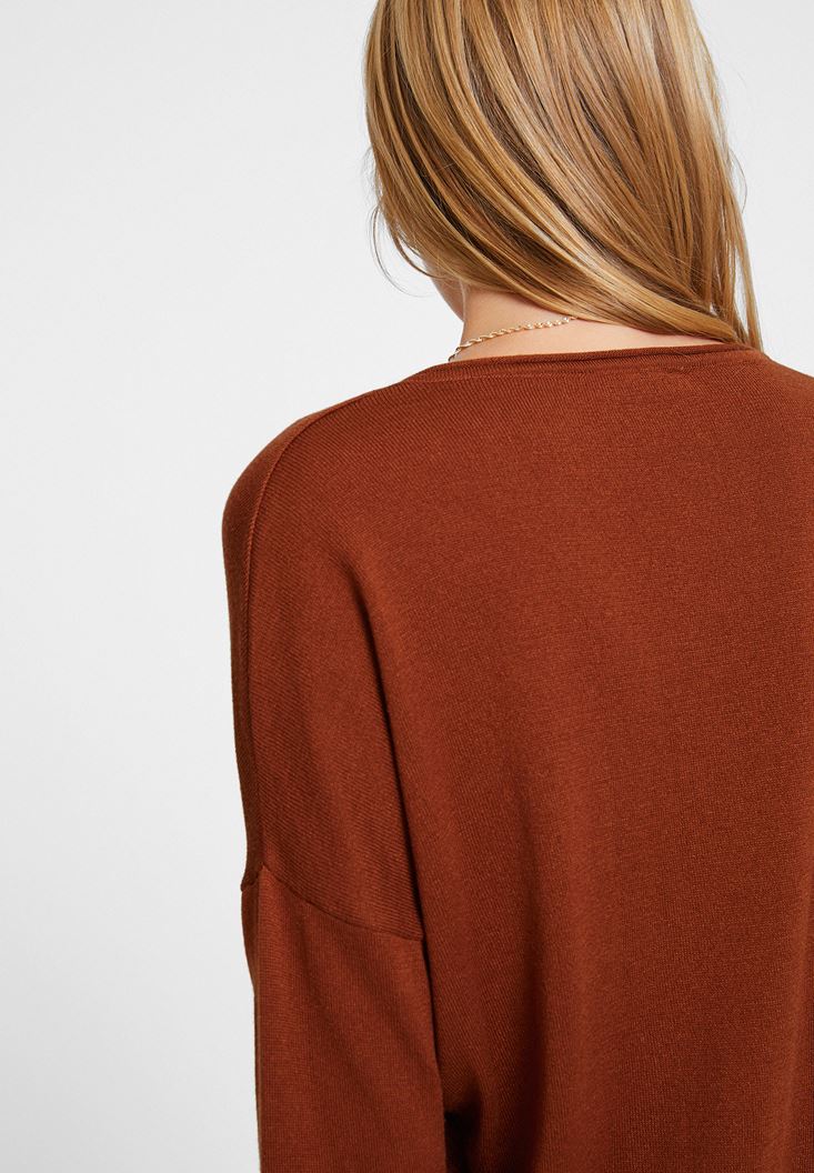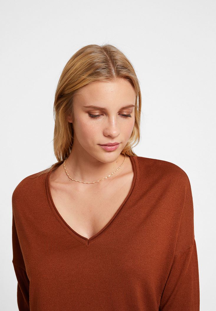 • Bayan Kahverengi V Yaka Yanları Detaylı Triko