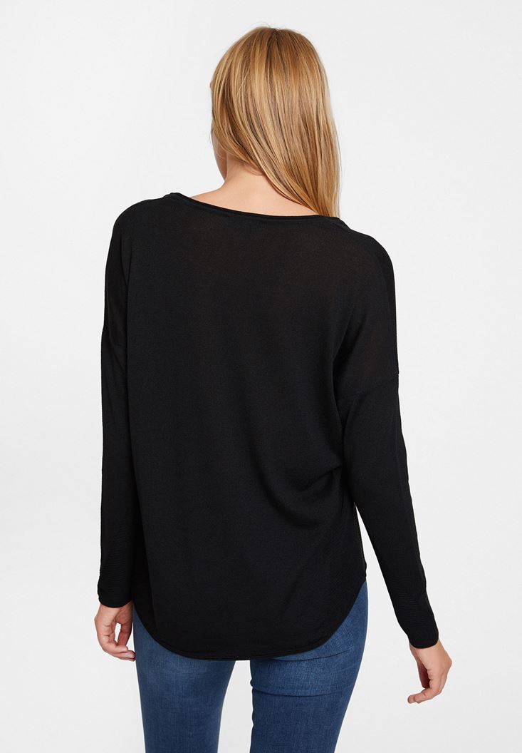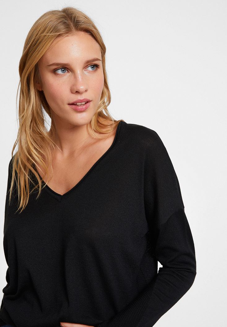 • Bayan Siyah V Yaka Yanları Detaylı Triko