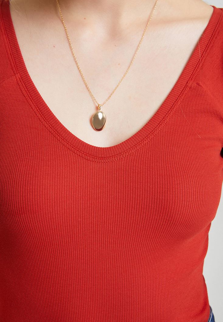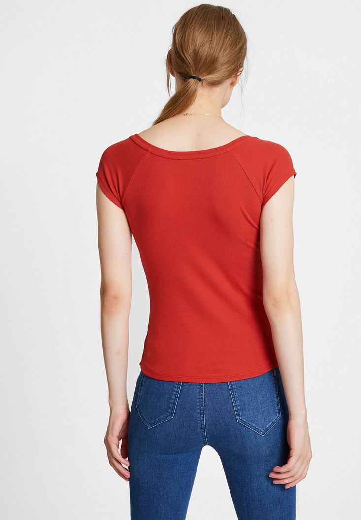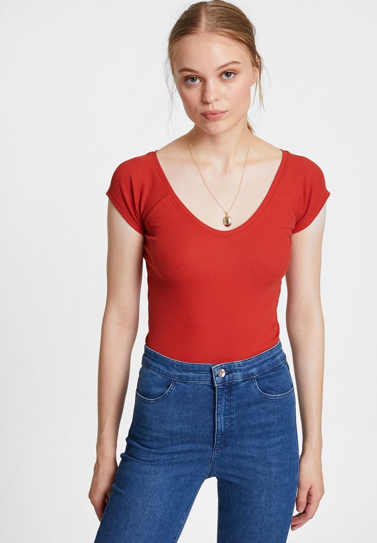 Kırmızı V Yaka Yarım Kollu Basic