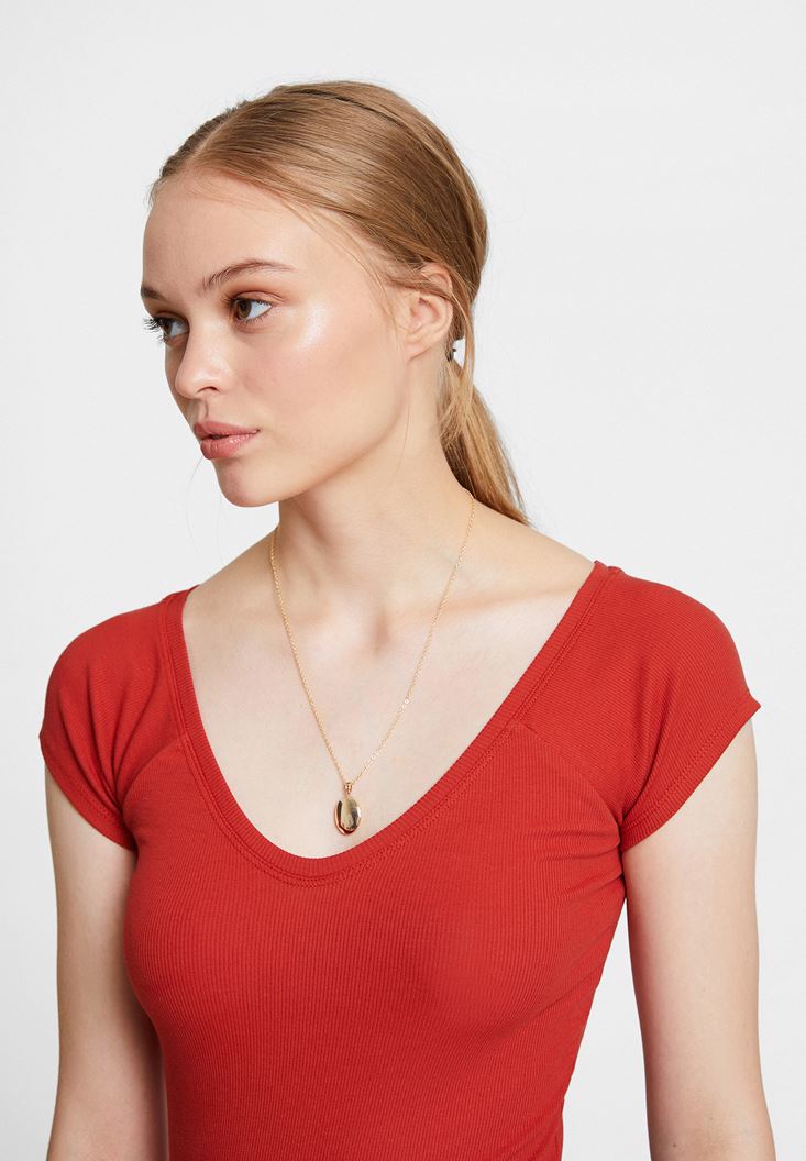 • Bayan Kırmızı V Yaka Yarım Kollu Basic