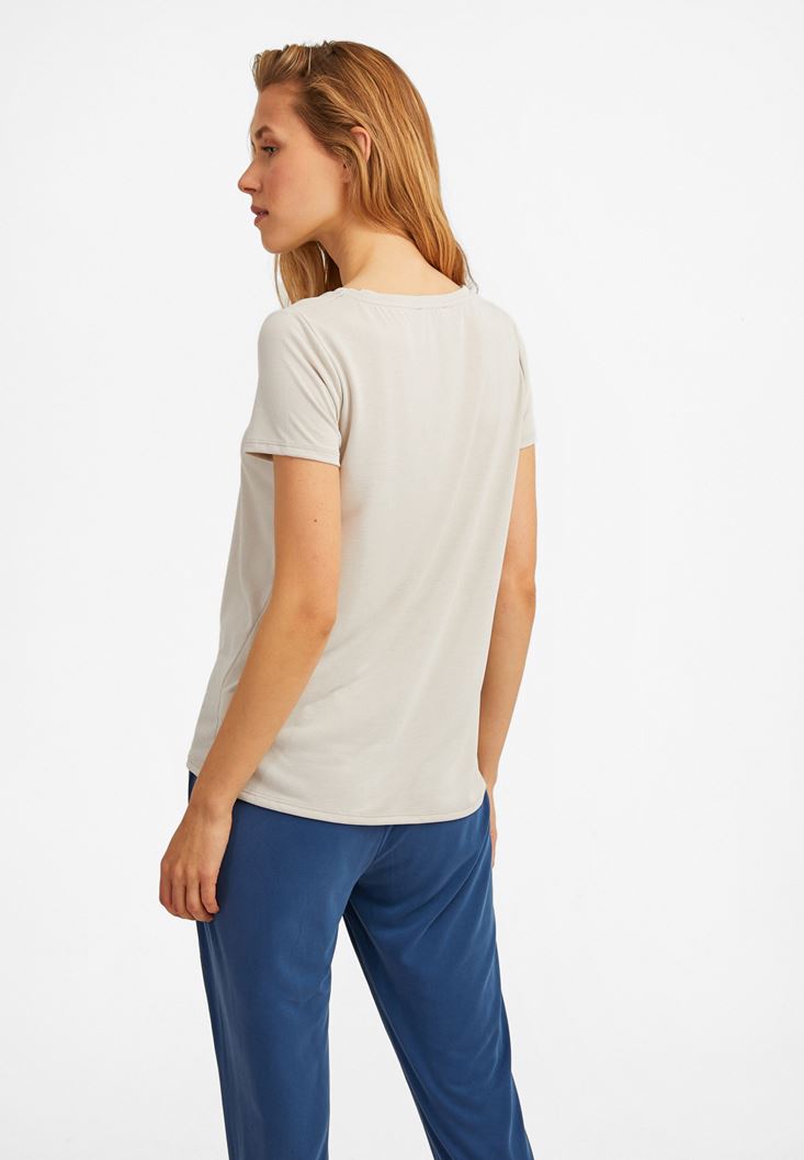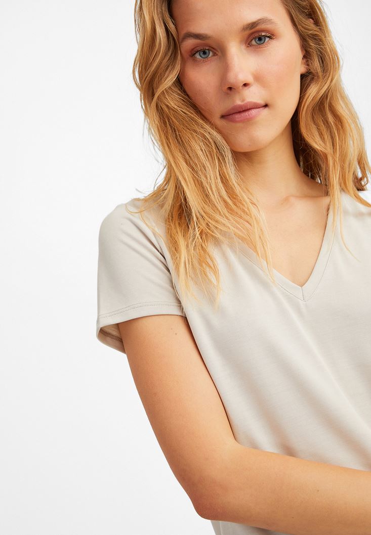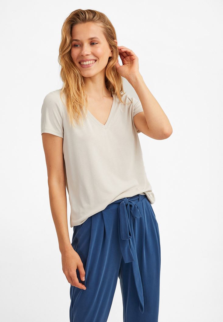 • Bayan Krem V Yaka Yumuşak Dokulu Tişört