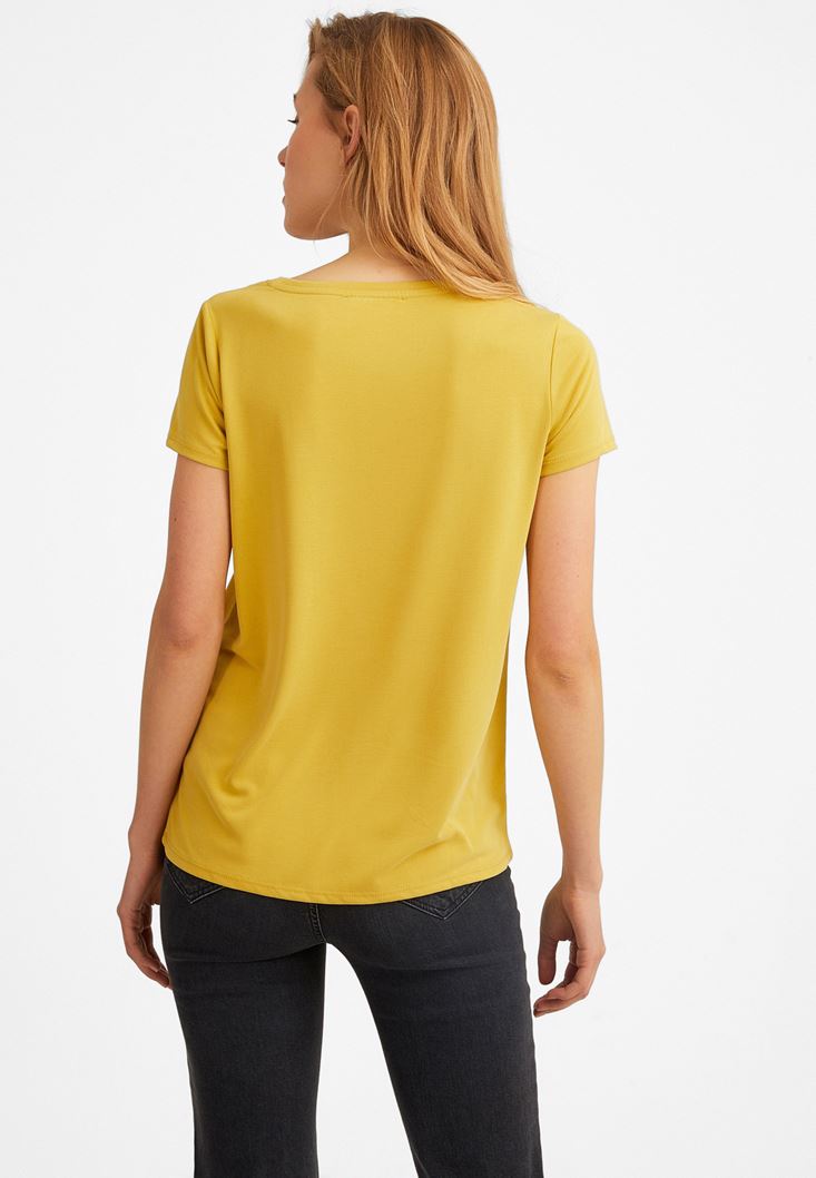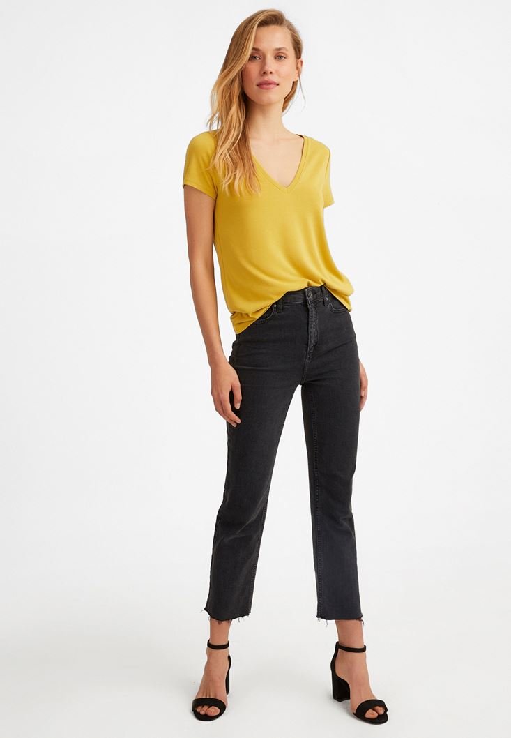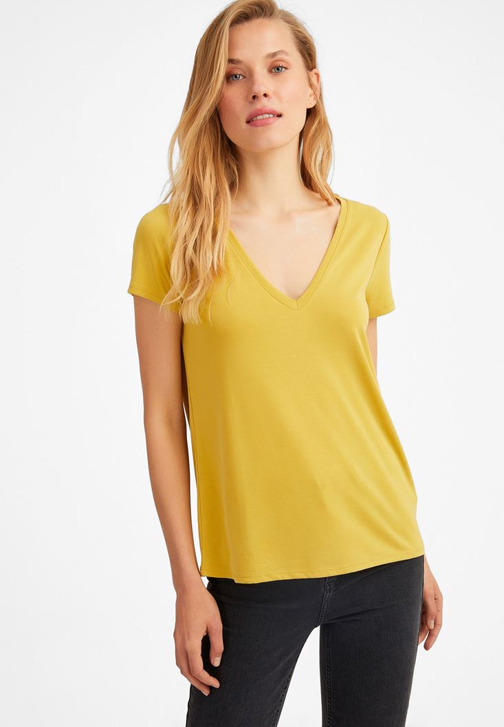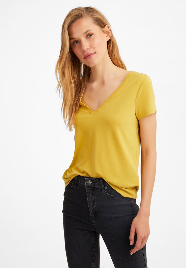 • Bayan Sarı V Yaka Yumuşak Dokulu Tişört