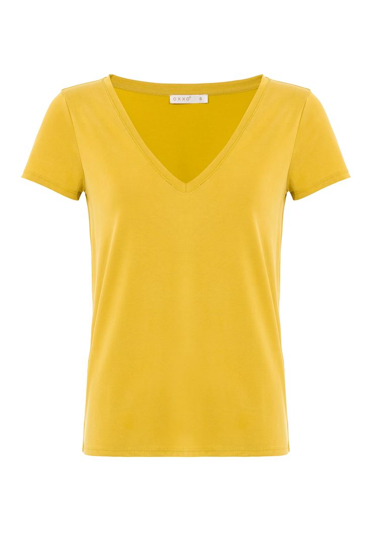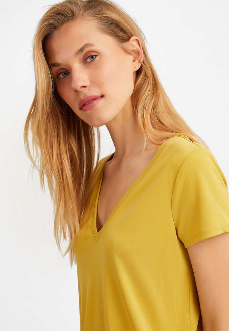 Sarı V Yaka Yumuşak Dokulu Tişört