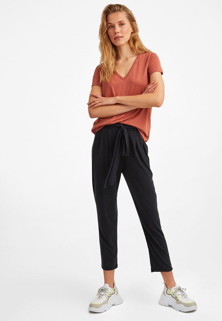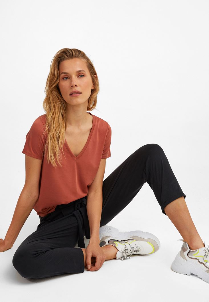 Oxxo V Yaka Yumuşak Dokulu Tişört 2091453364