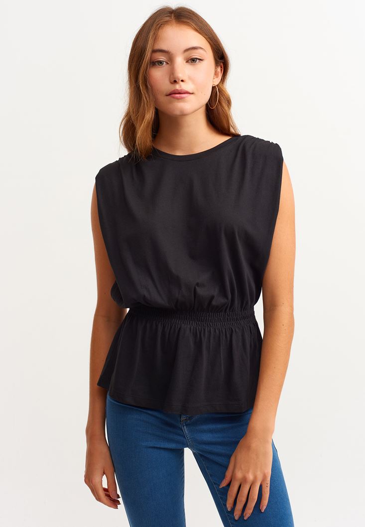 Vatkalı Bluz modeli. Hayallerindeki rahat dokuya modal ve pamuk içerikli bu parça ile ulaşabilmek heyecan verici! Vatka ayrıntısının nostaljik esintisi ile birleşen bluz modeli, büzgülü bel detayı eşliğinde seninle buluşmaya hazır... Jeanlerin gücünü bu parça ile desteklemek için daha fazla bekleme, rahatlık yanı başında olmalı! Sezonda yükselişe geçen topuklu terliklerle kullanabileceğin bluz modeli ile hemen tanış...
