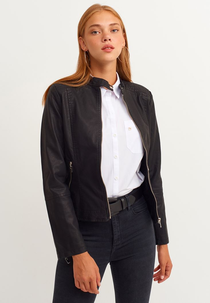 Cool ve etkileyici görünümün anahtarı olan ceketler arasına bir yenisi daha eklendi! Omuz ve bel kısmındaki dikiş detaylarıyla ön plana çıkan biker ceket modeli, seni havalı kombinlere ulaştıracak... Günlük kombinlerinde kullanabileceğin sade ve güçlü parçaları biker ceket modeli ile birleştir...