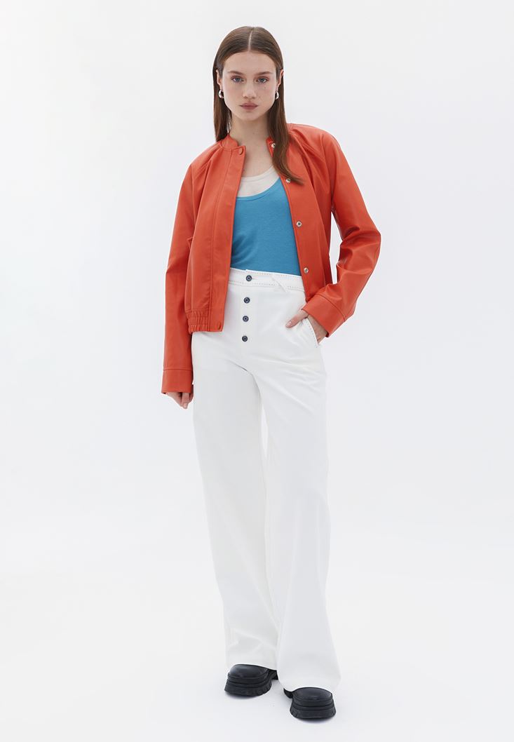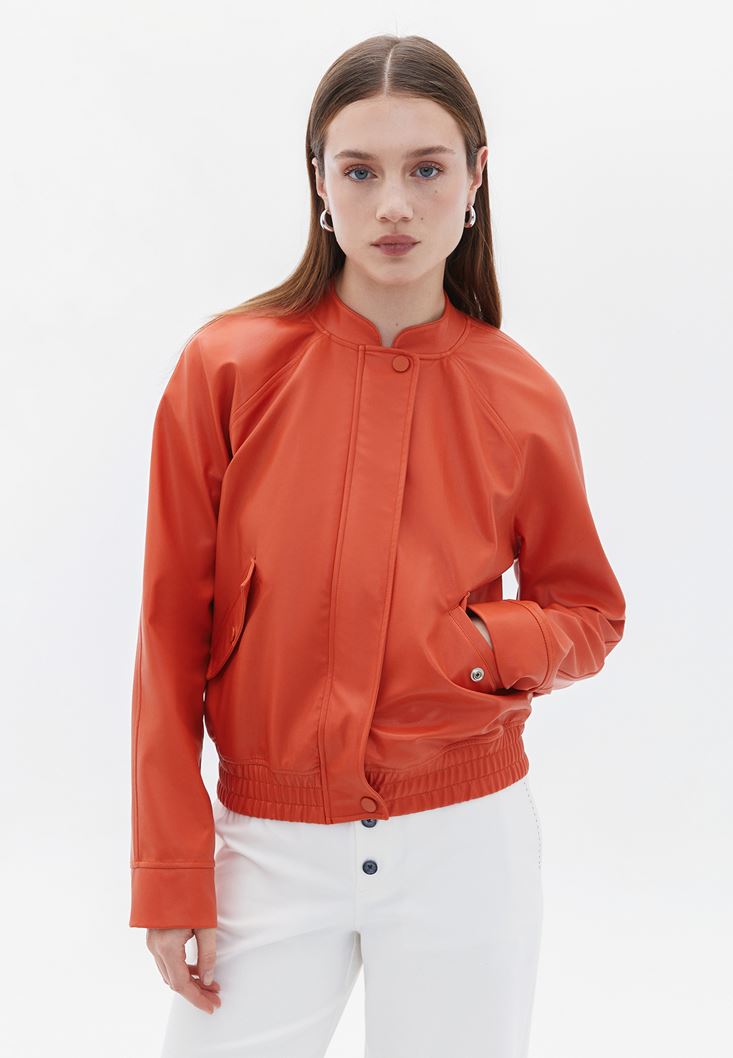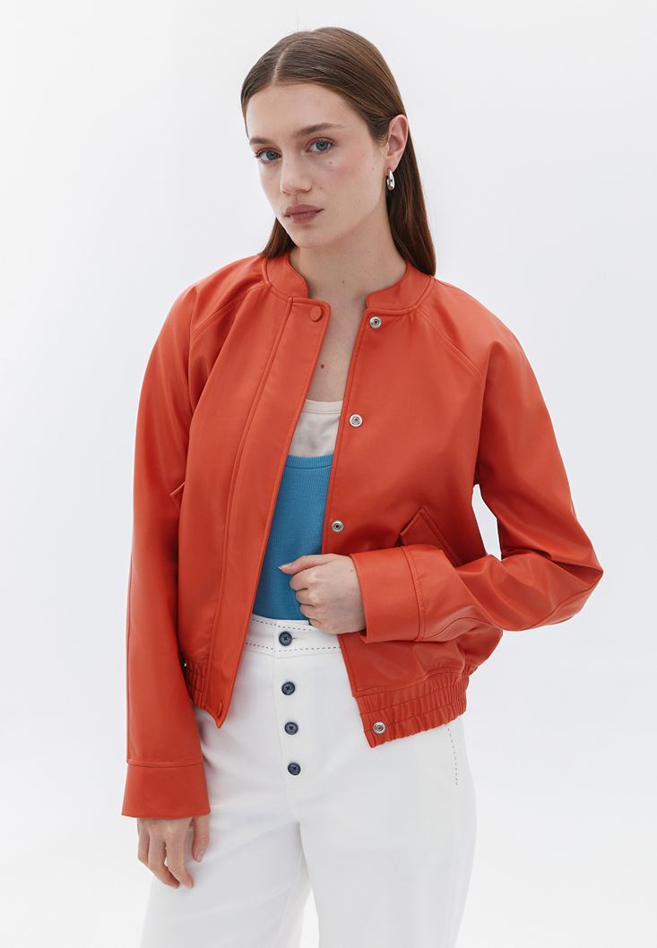 • Bayan Turuncu Vegan Deri Bomber Ceket