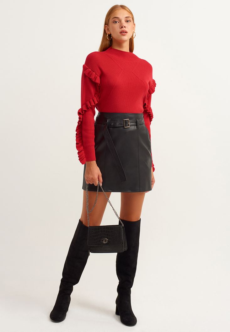 Utopia koleksiyonu ile sunulan vegan deri mini etek bu mevsim favorilerinden biri olabilir! Kemerli ve cepli görünümü ile hareketlilik yaratan bu parça ile ani gelişen randevular için "ne giyeceğim?" sorusu sormak yok... :) Onunla birlikte crop atletleri ve midi hırkaları birleştirerek dahil olacağın ortama uygun kombinler yapabilirsin... Mini etek formuna çok yakışacak uzun çizmeler de bu kombine eşlik edebilir! :)