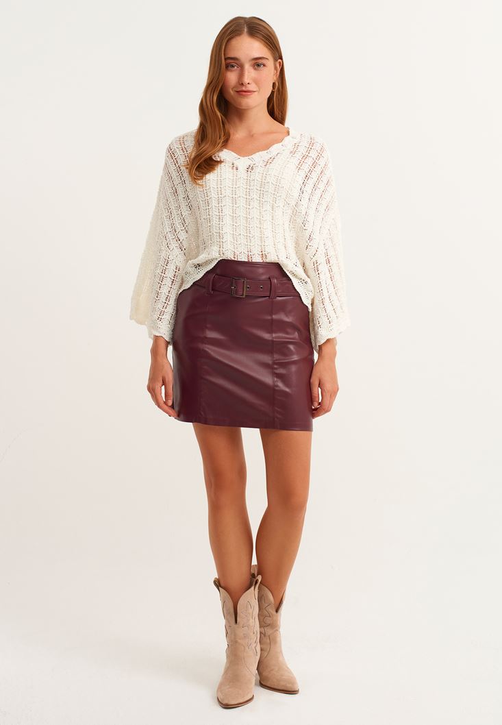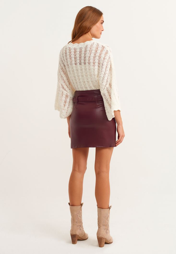 • Bayan Bordo Vegan Deri Casual Mini Etek
