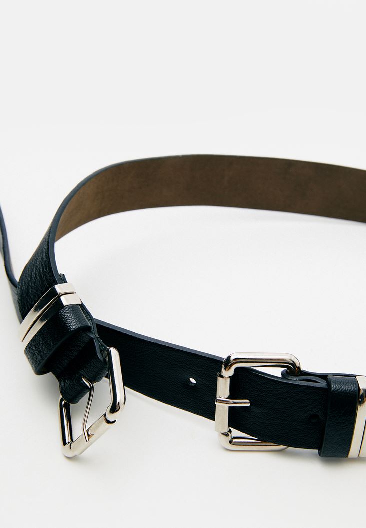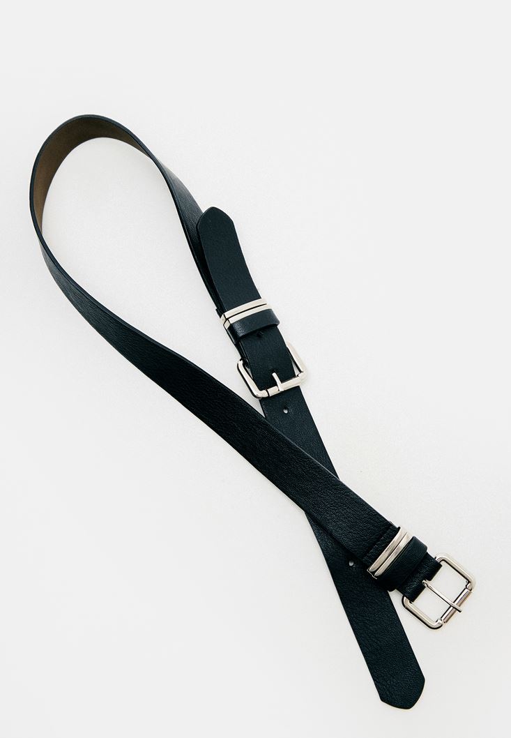 • Bayan Siyah Vegan Deri Çift Tokalı Kemer