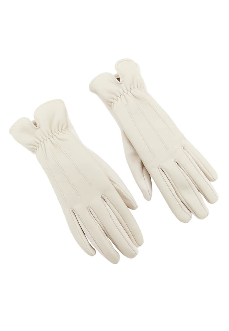 • Bayan Krem Vegan Deri Detaylı Eldiven