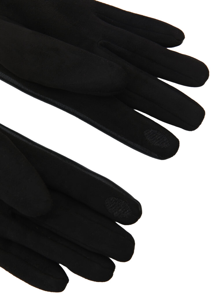 • Bayan Siyah Vegan Deri Detaylı Eldiven