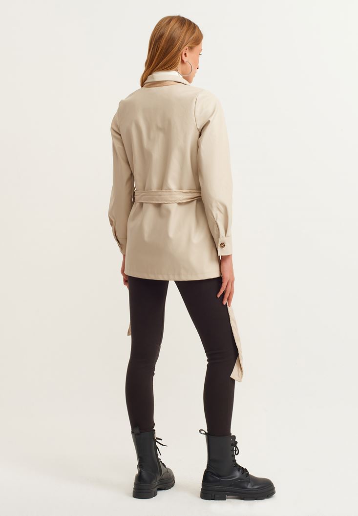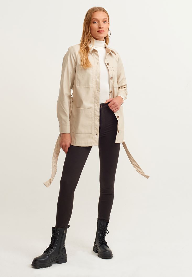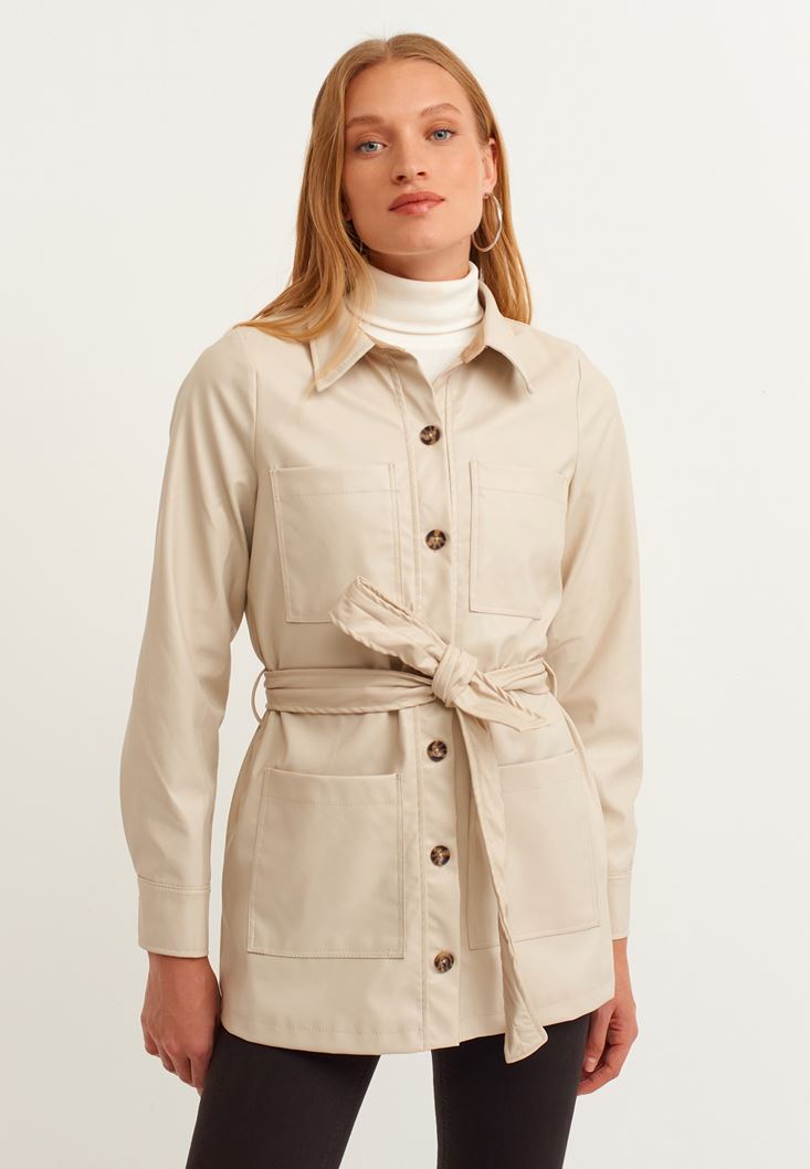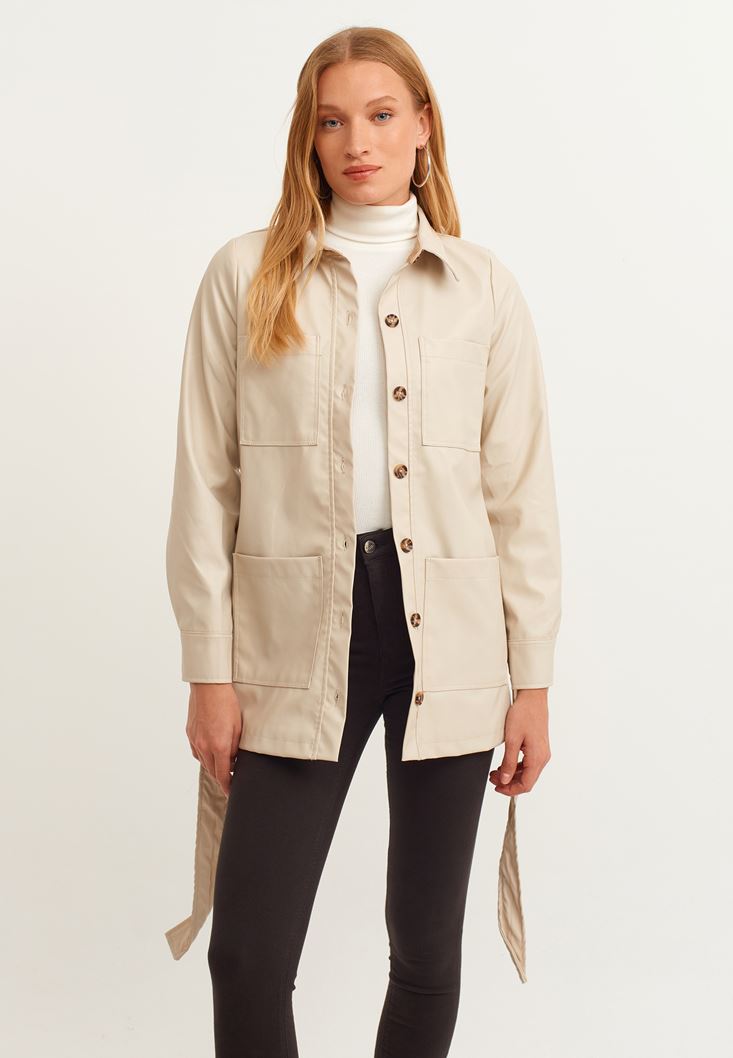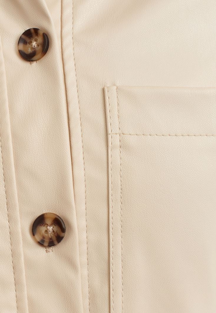 Bej Vegan Deri Gömlek Ceket