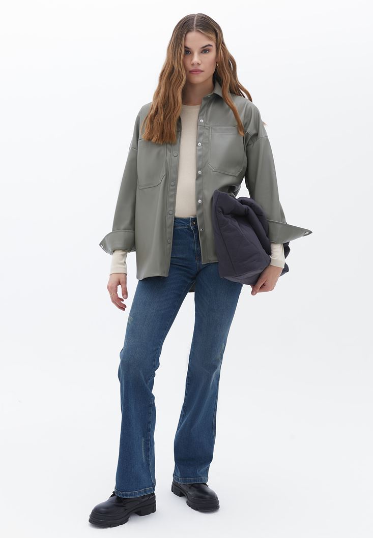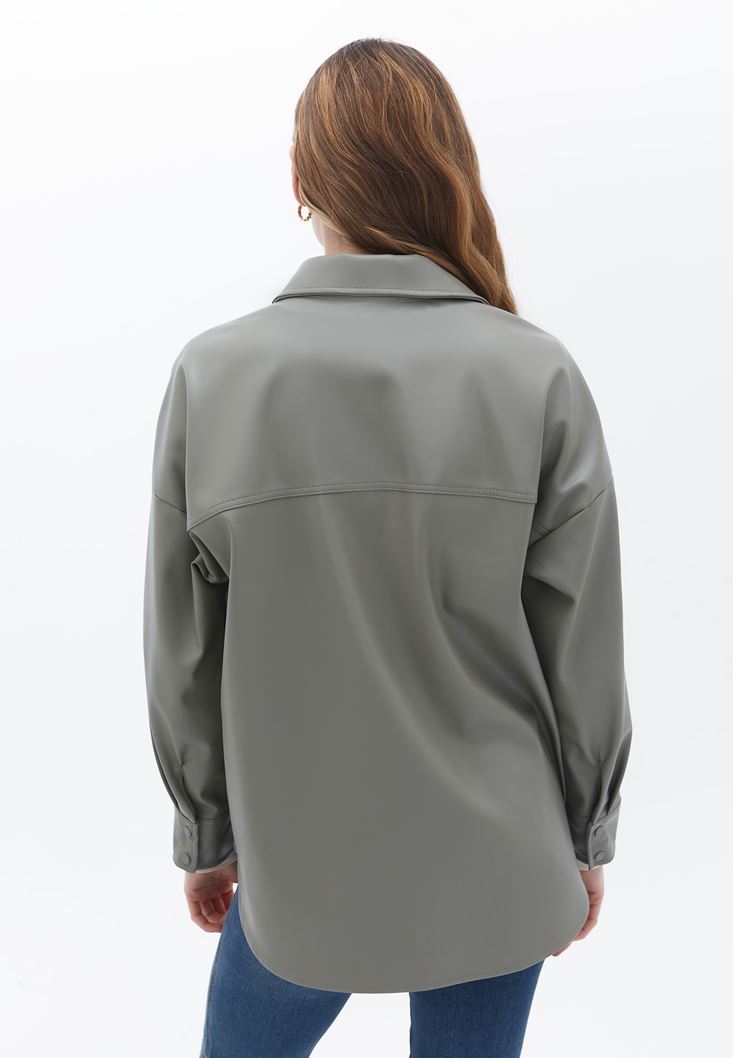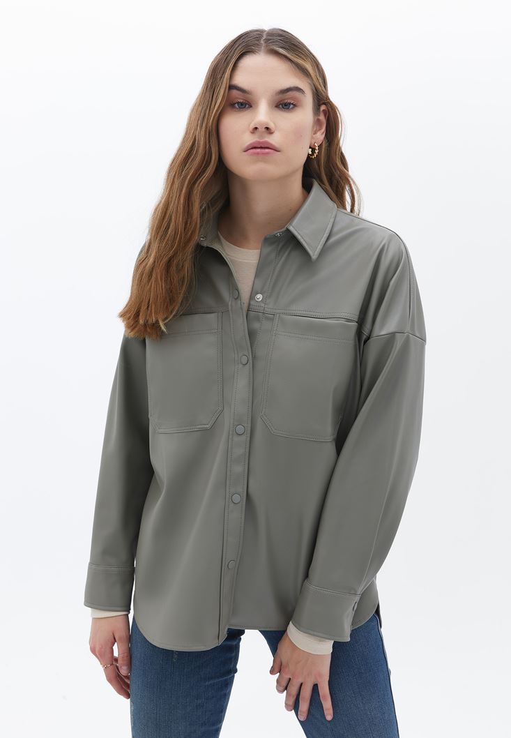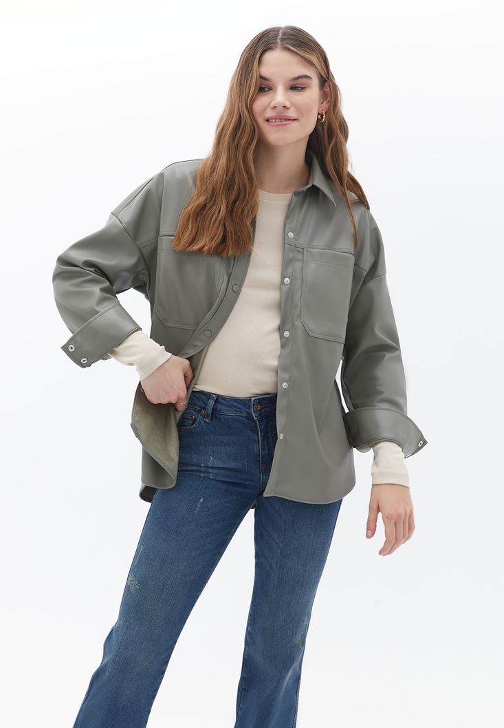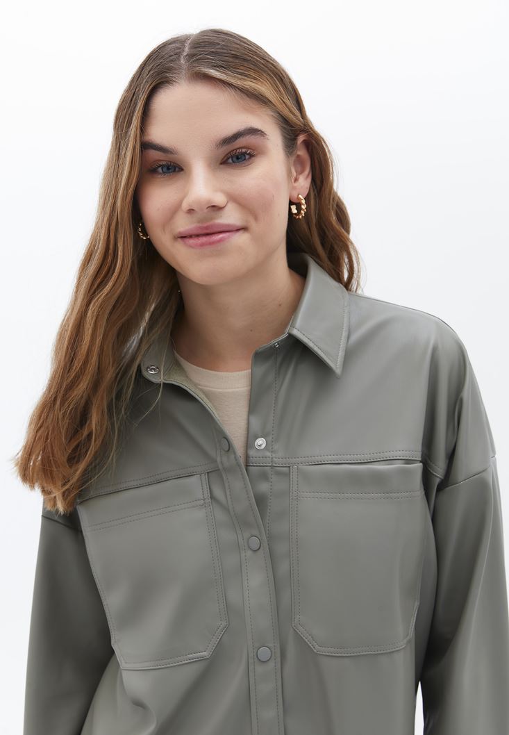 Yeşil Vegan Deri Gömlek Ceket