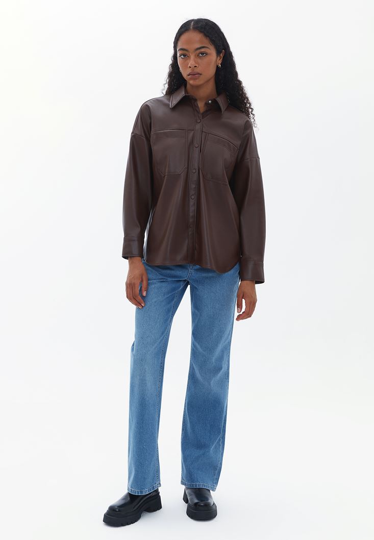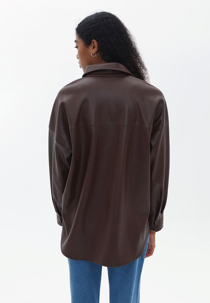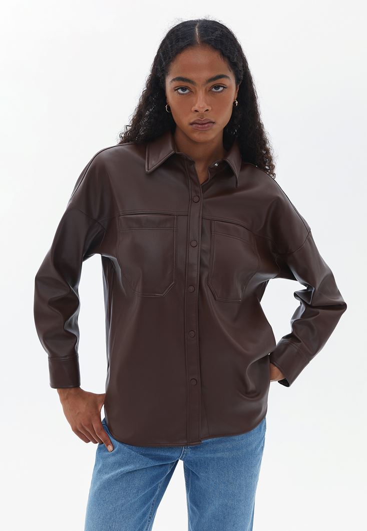 • Bayan Kahverengi Vegan Deri Gömlek Ceket