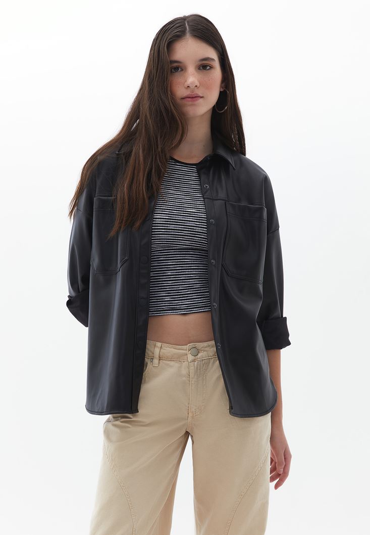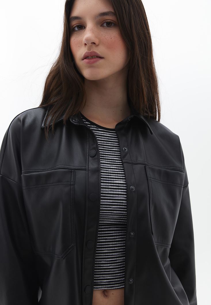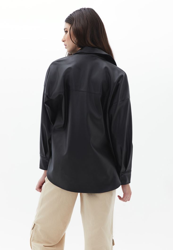 Siyah Vegan Deri Gömlek Ceket