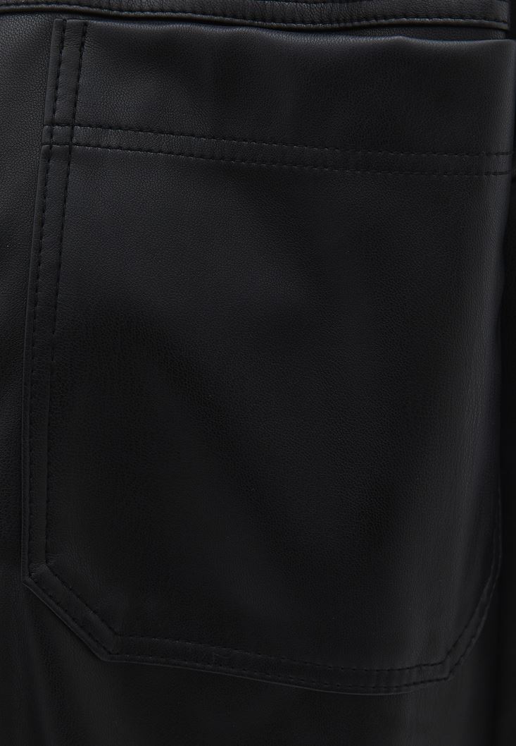 • Bayan Siyah Vegan Deri Gömlek Ceket