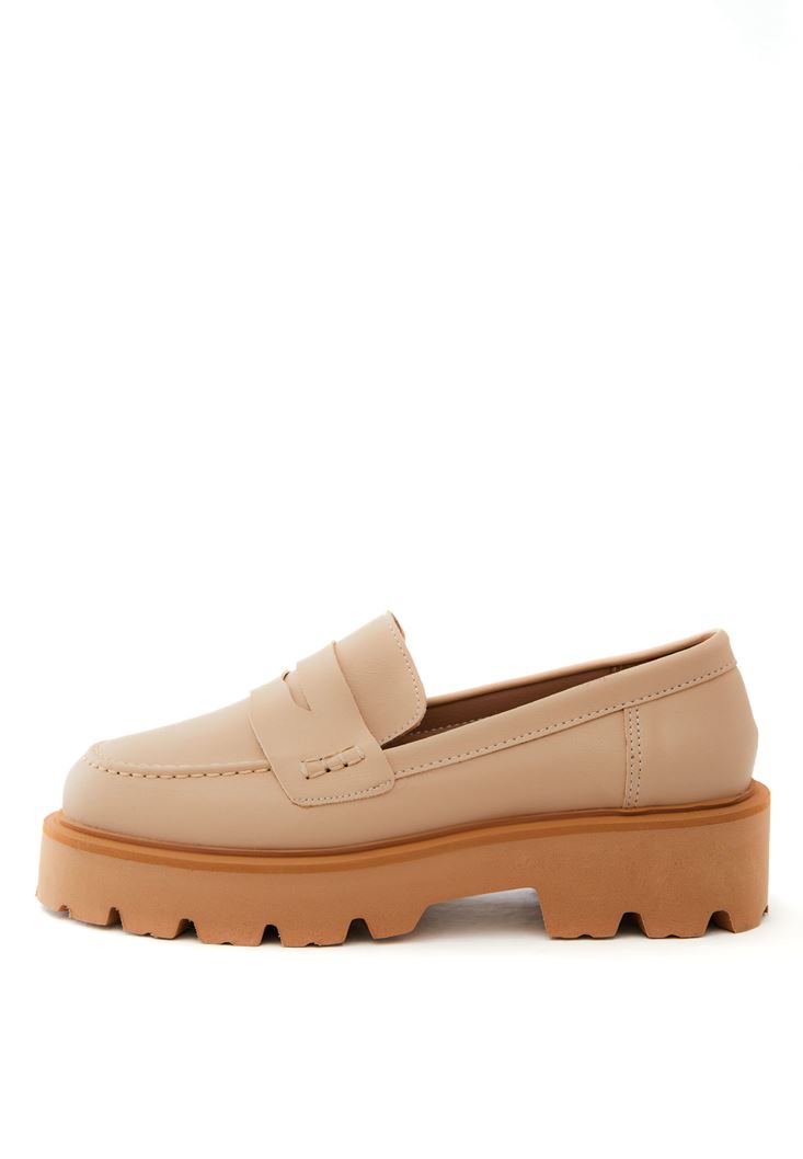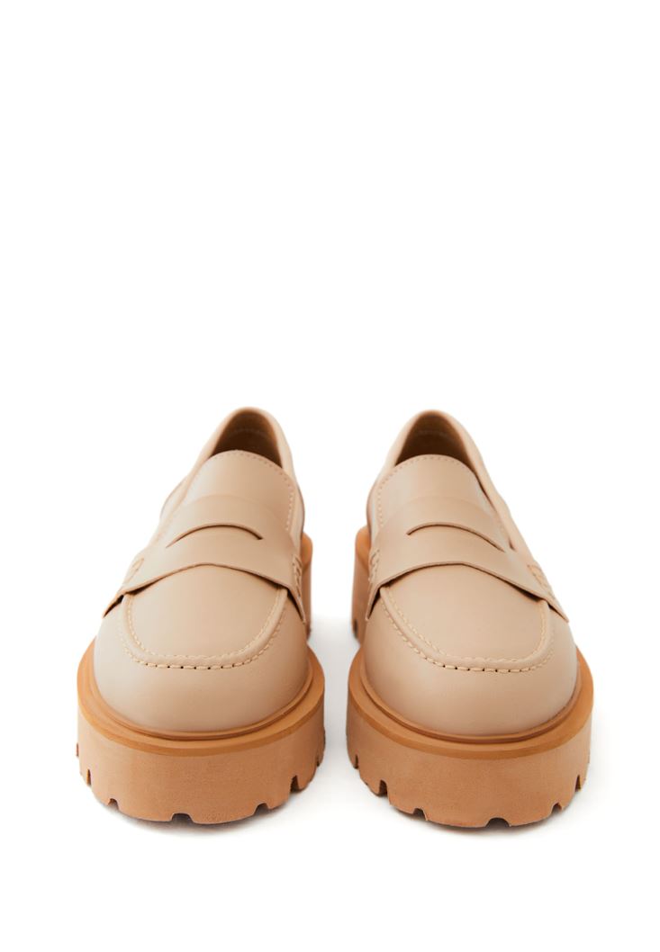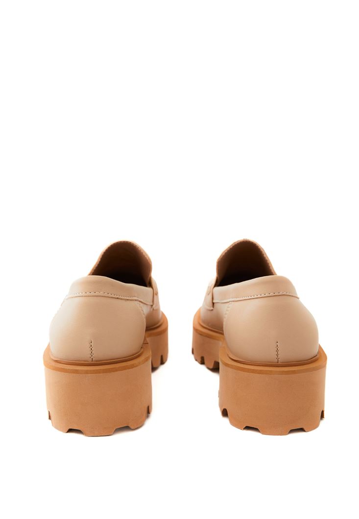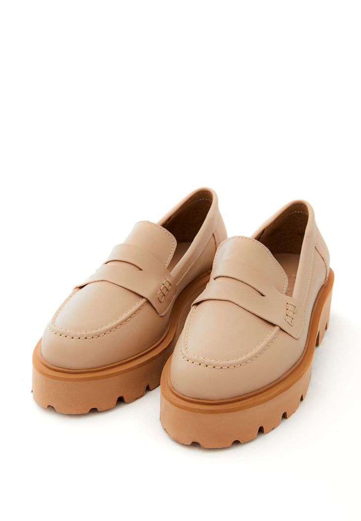 • Bayan Bej Vegan Deri Loafer Ayakkabı