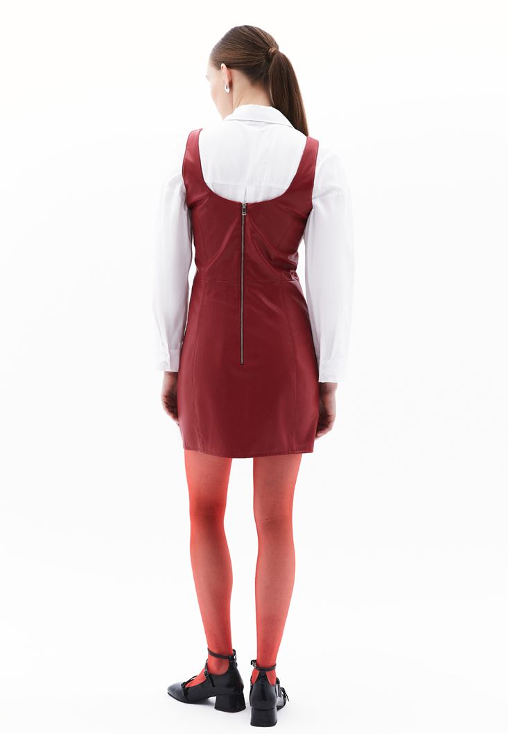 • Bayan Kırmızı Vegan Deri Mini Elbise