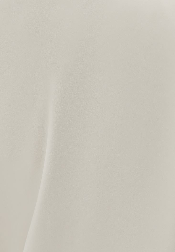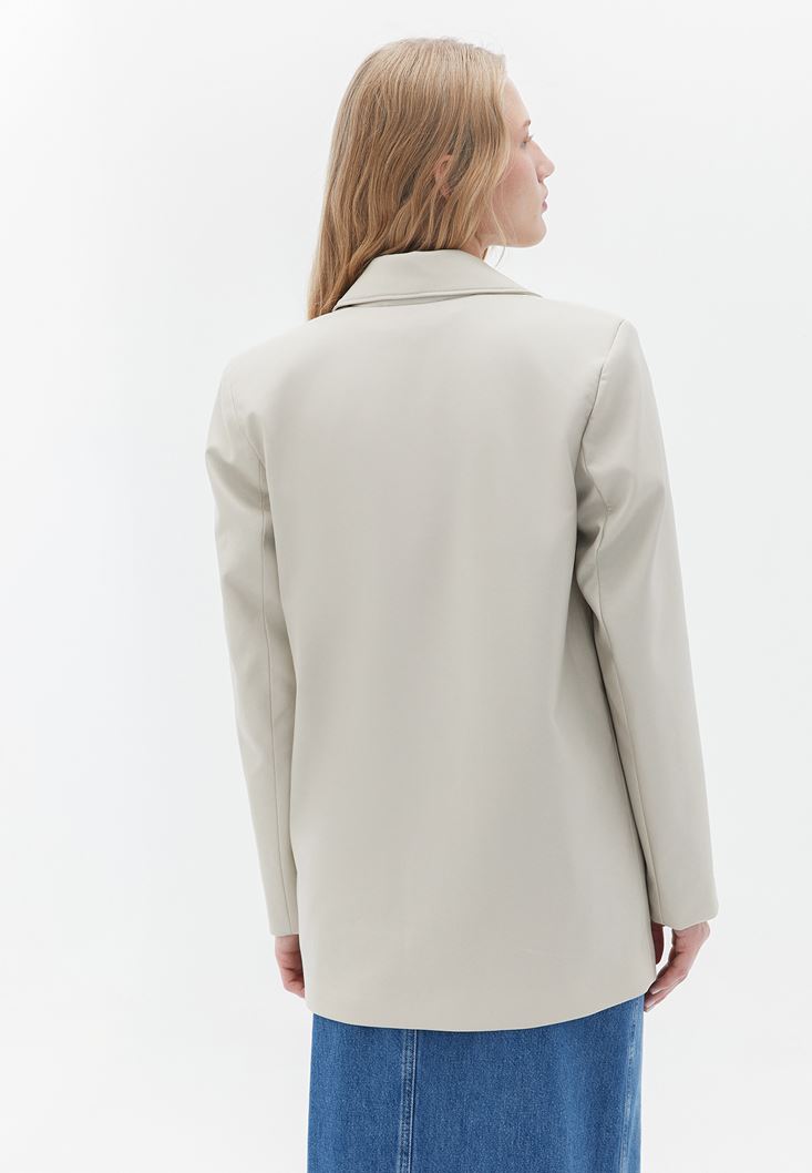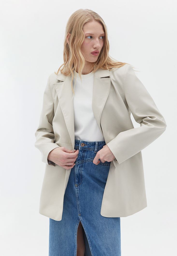 Krem Vegan Deri Oversize Blazer Ceket