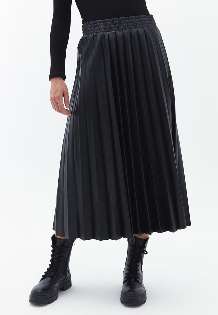 Oxxo Vegan Deri Pileli Midi Etek 214801147