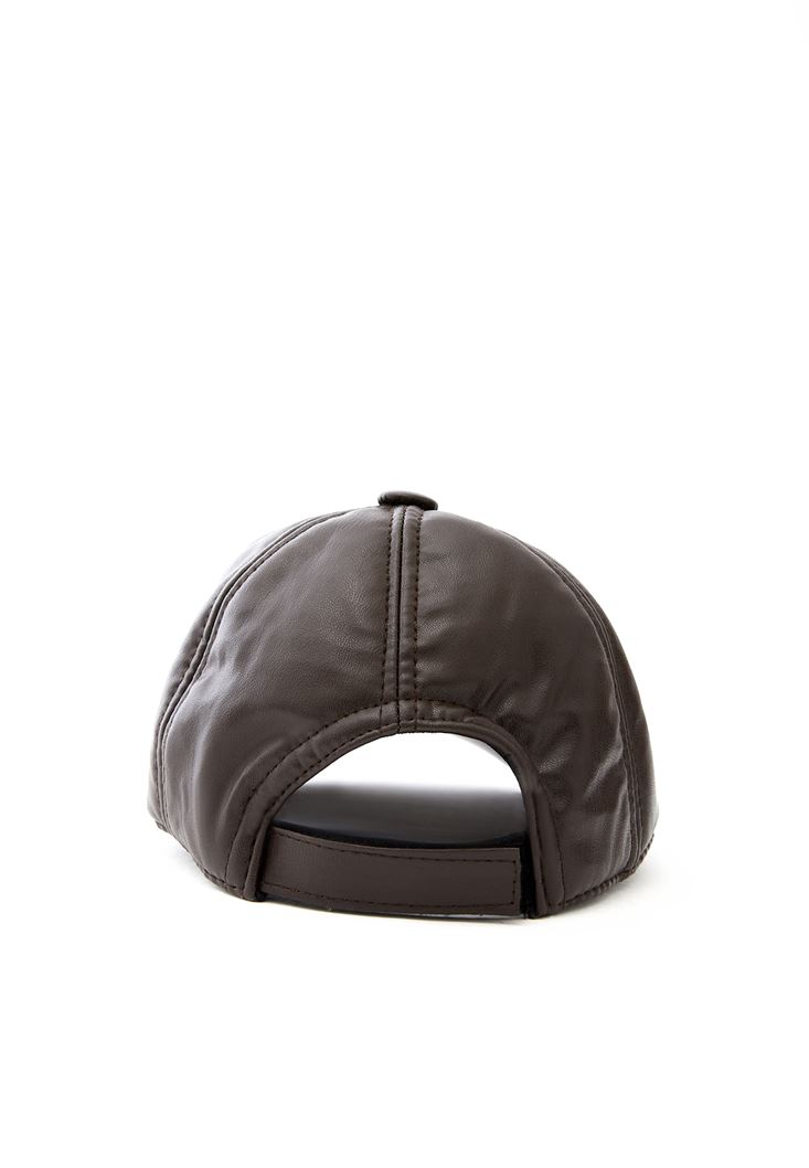 Kahverengi Vegan Deri Şapka