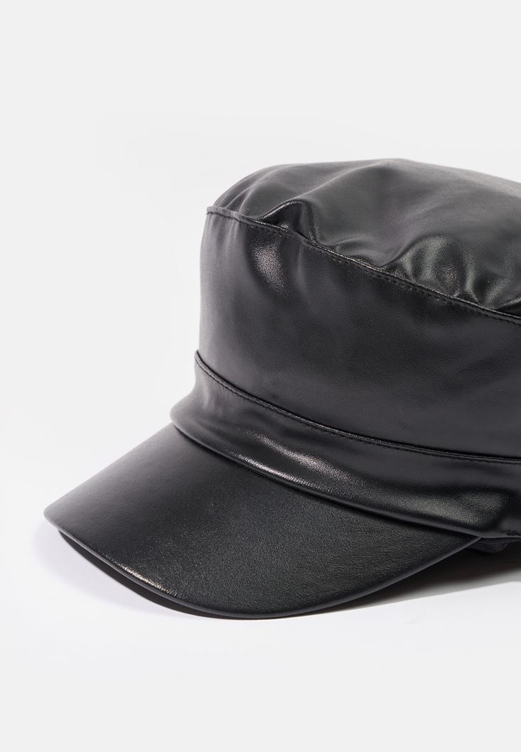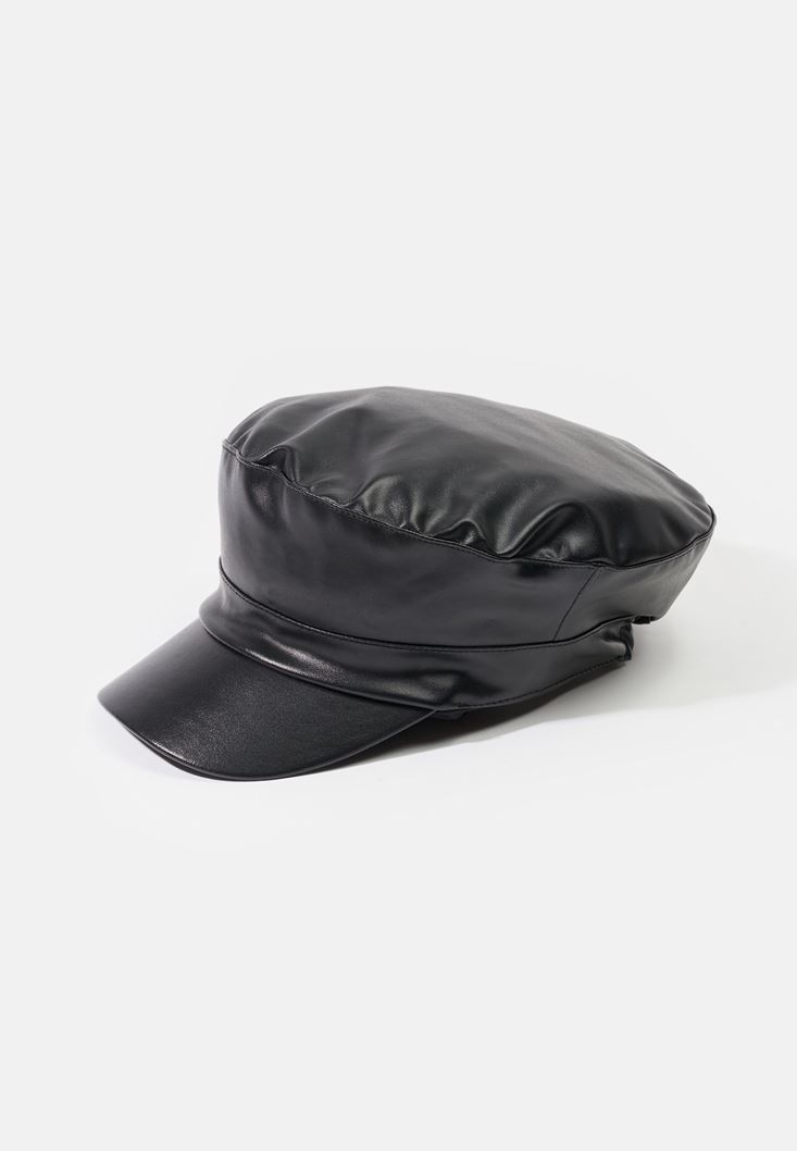 Siyah Vegan Deri Şapka