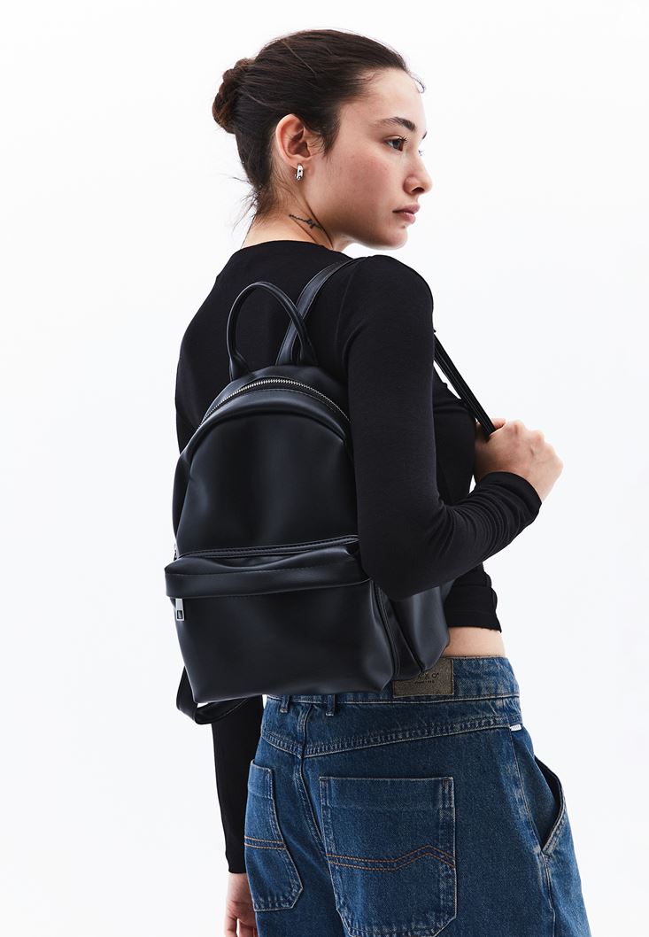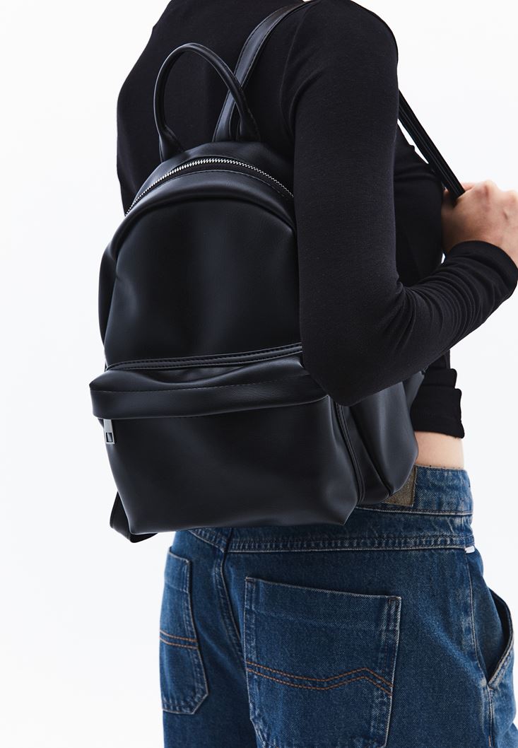 Siyah Vegan Deri Sırt Çantası