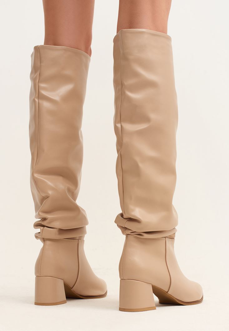 • Bayan Krem Vegan Deri Slouchy Çizme