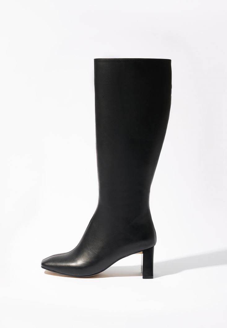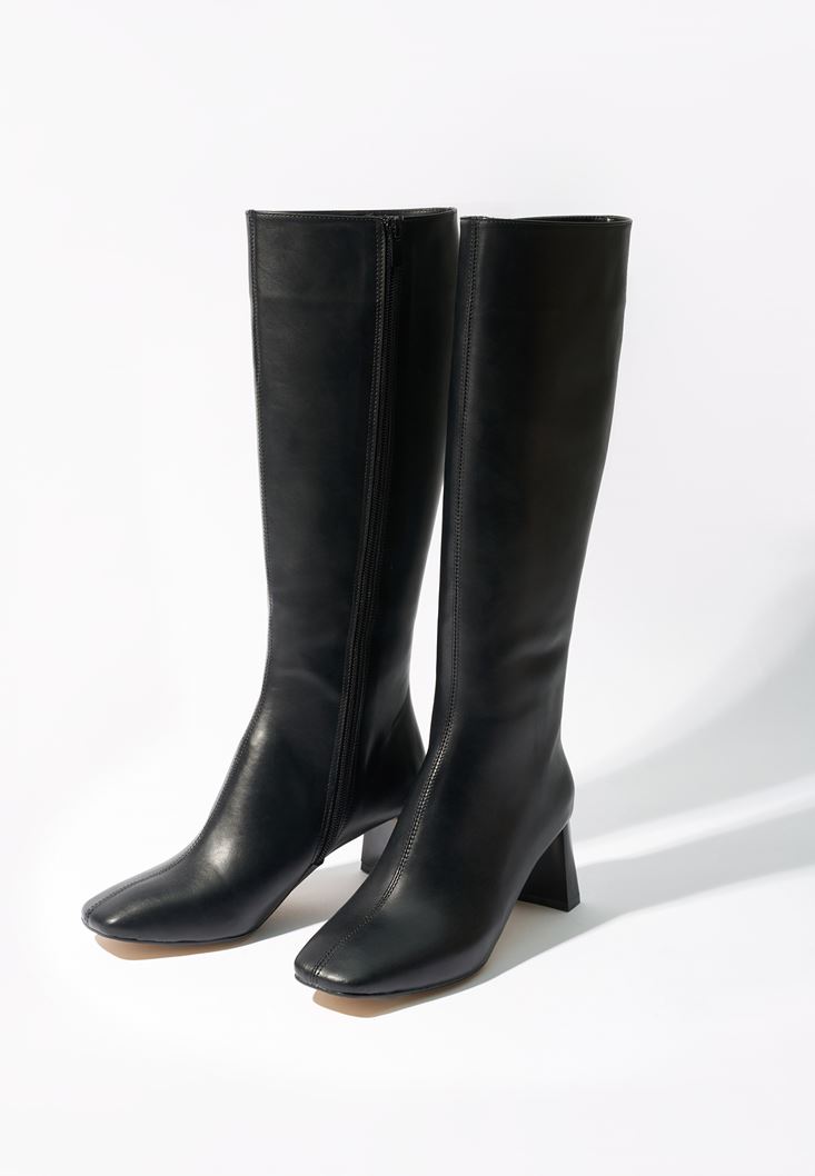 Siyah Vegan Deri Uzun Çizme