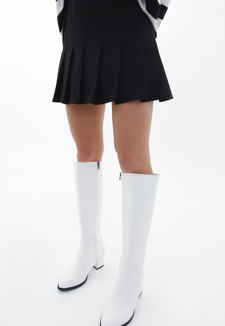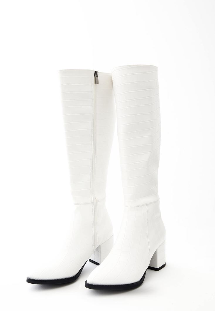 • Bayan Beyaz Vegan Deri Uzun Çizme
