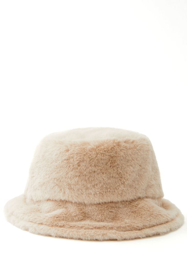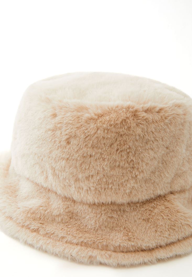 • Bayan Bej Vegan Kürk Bucket Şapka