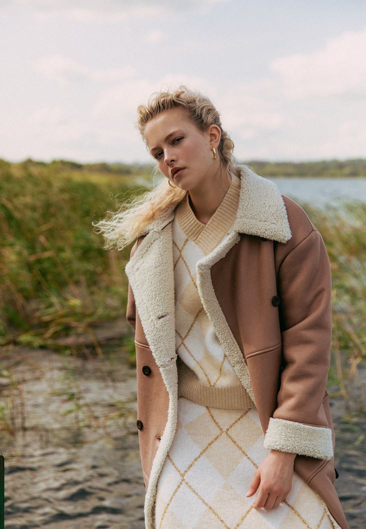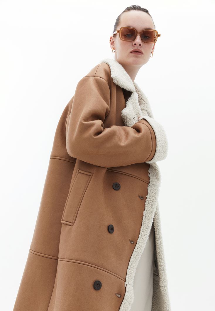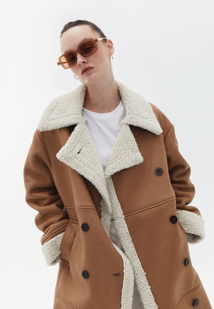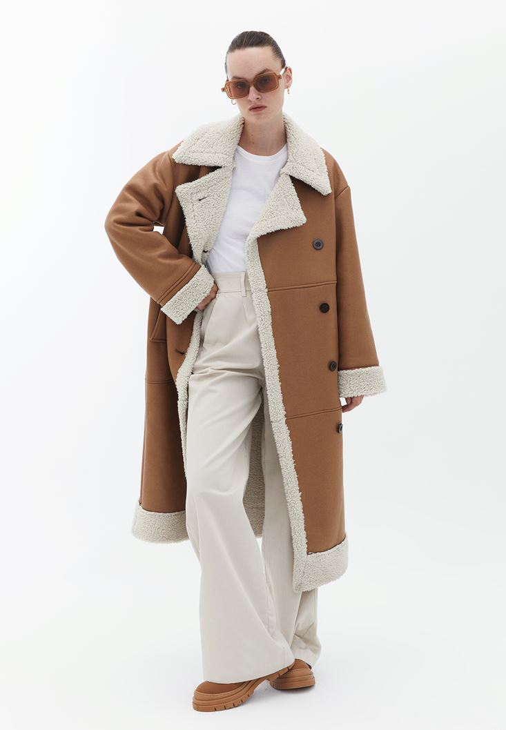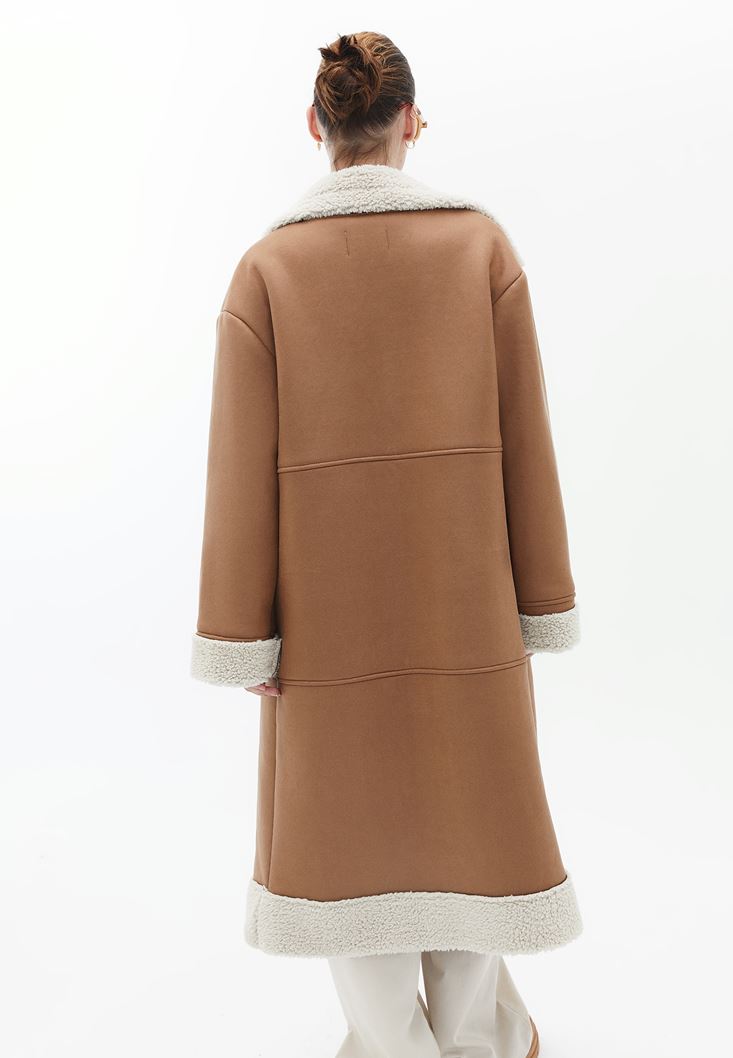 • Bayan Kahverengi Vegan Kürk Detaylı Kaban