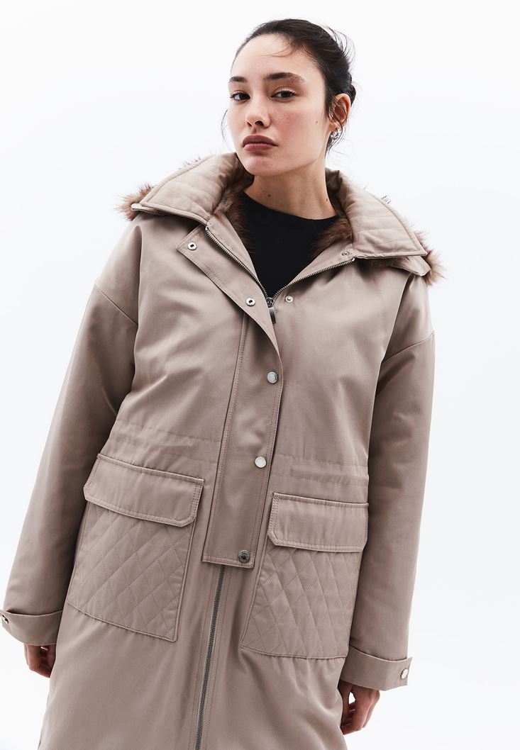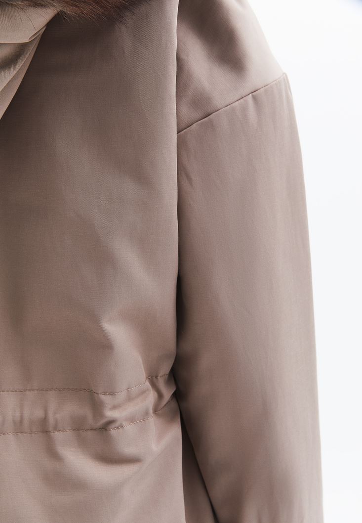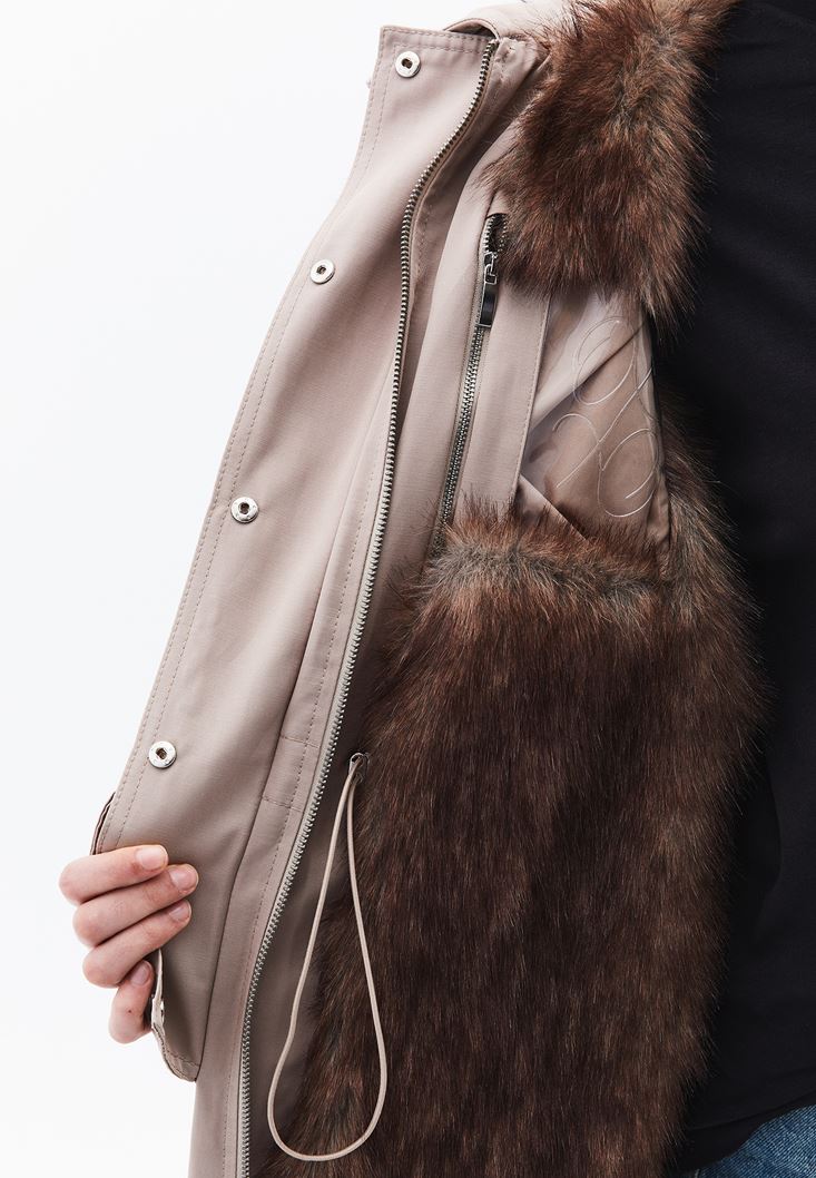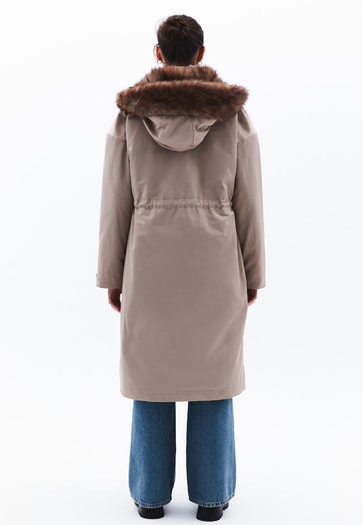 • Bayan Bej Vegan Kürk Dolgulu Uzun Mont