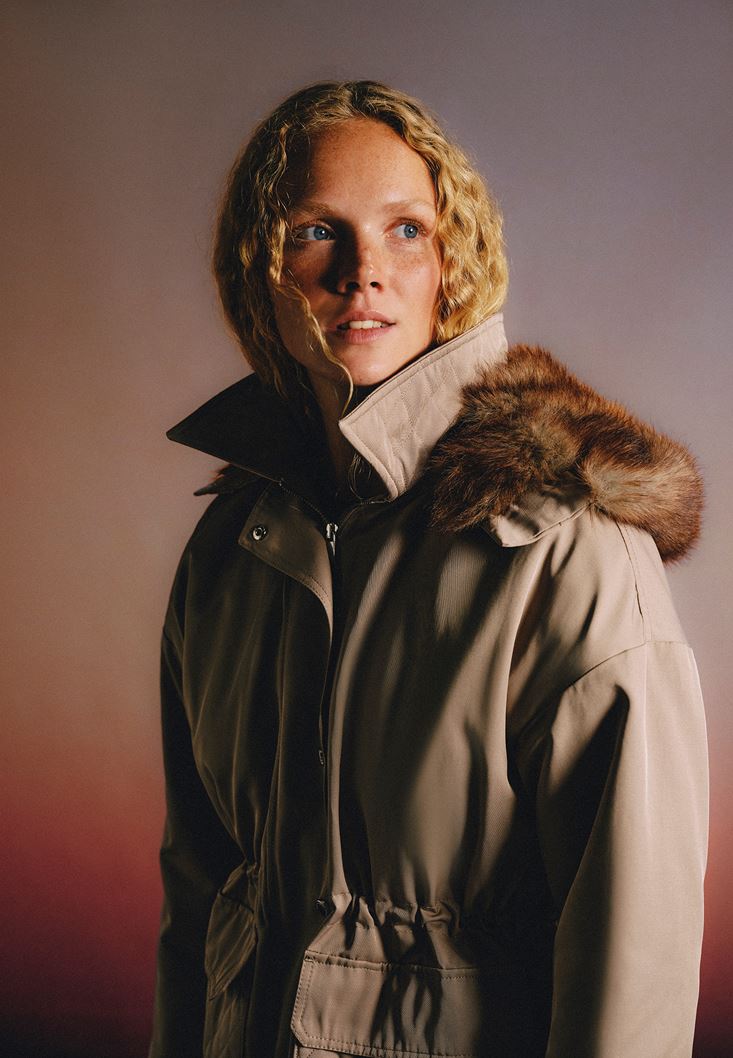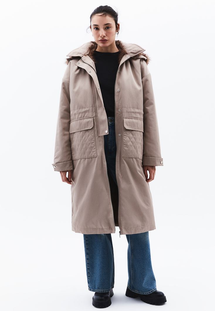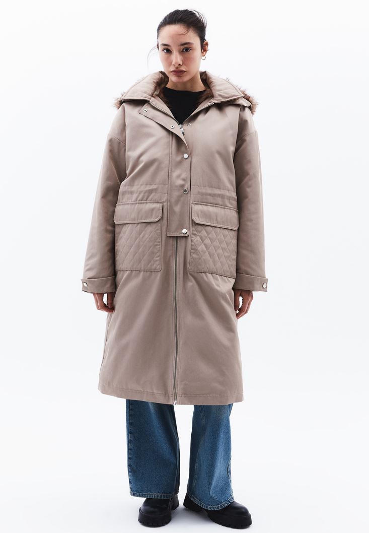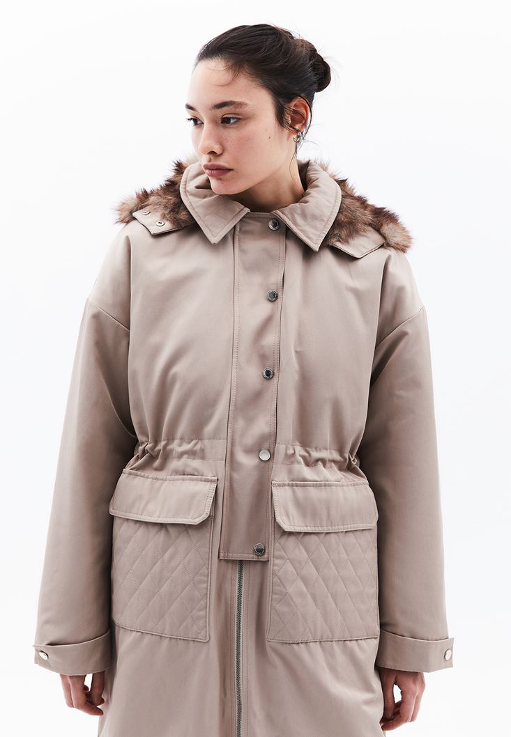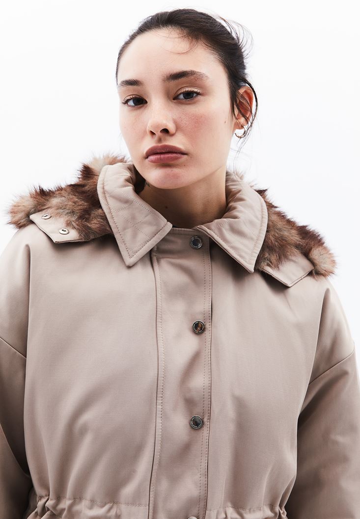 • Bayan Bej Vegan Kürk Dolgulu Uzun Mont