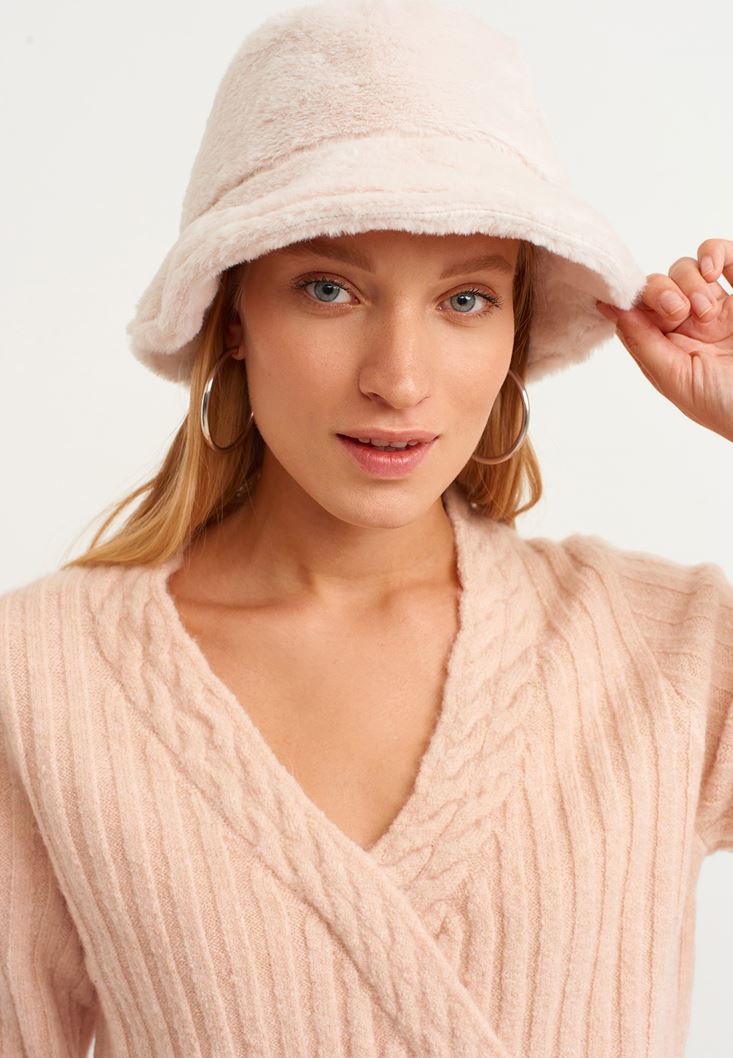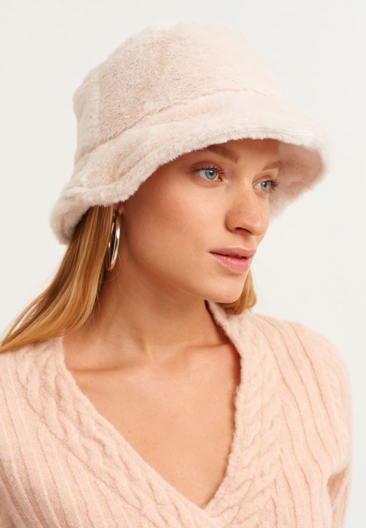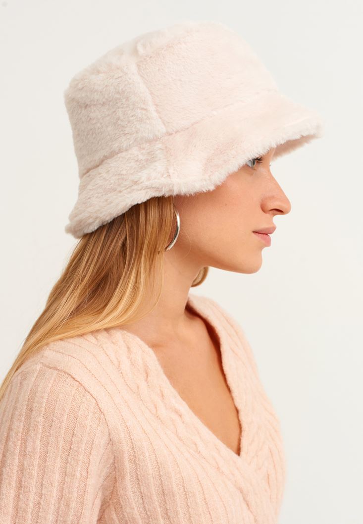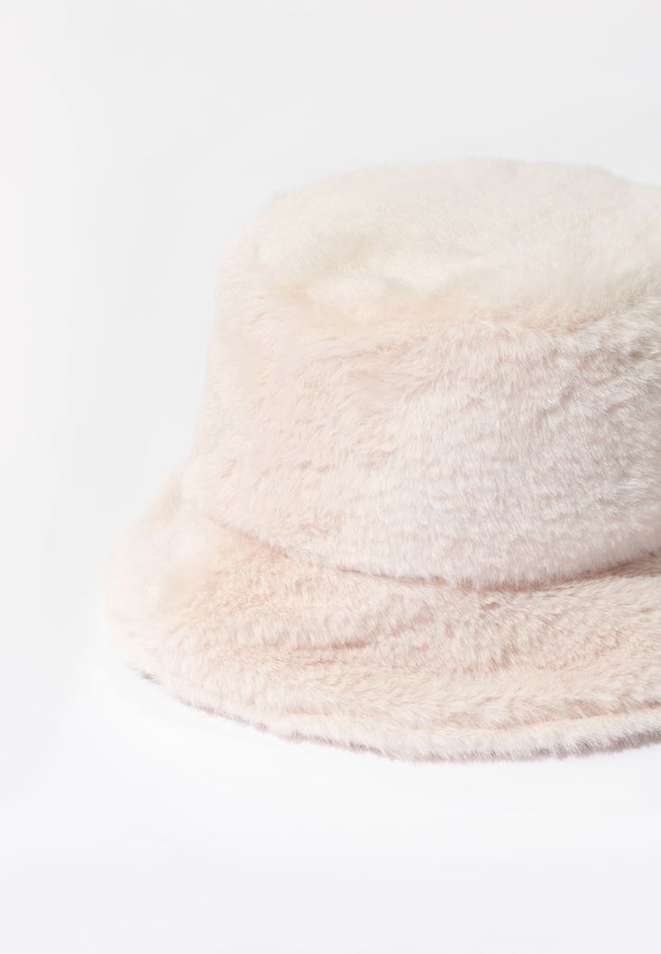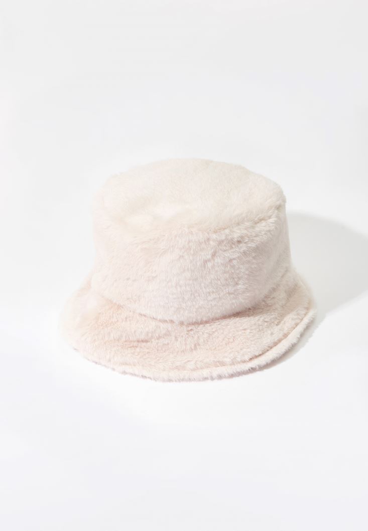 Krem Vegan Kürk Şapka