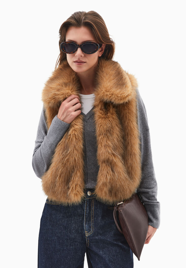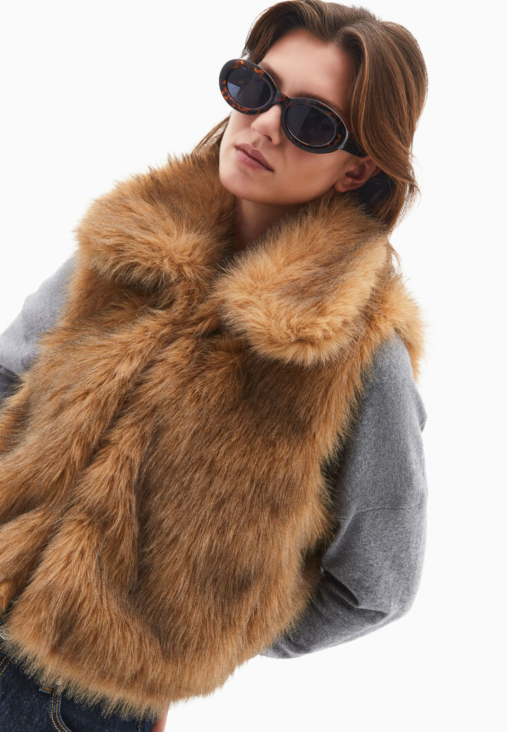 Yumuşacık dokusuyla öne çıkan bu vegan kürk yelek, stilinize hem sıcaklık hem de lüks bir hava katar. %100 hayvan dostu yapısıyla doğaya duyarlı bir seçim sunarken, modern görünümü sayesinde birçok stile uyum sağlar.