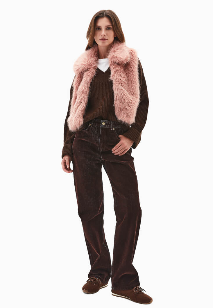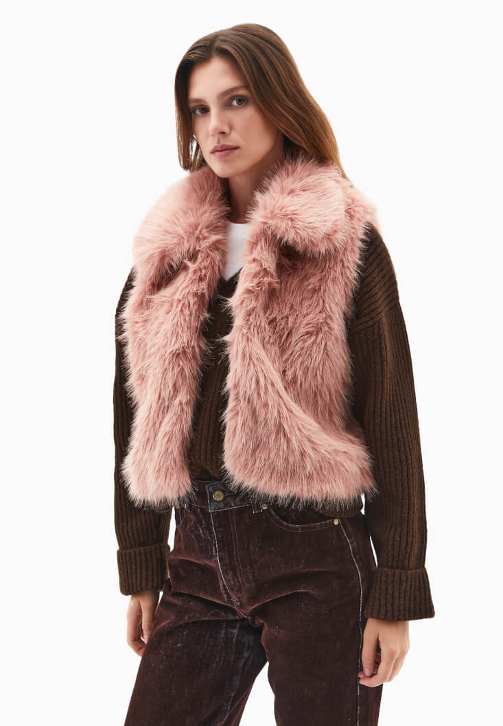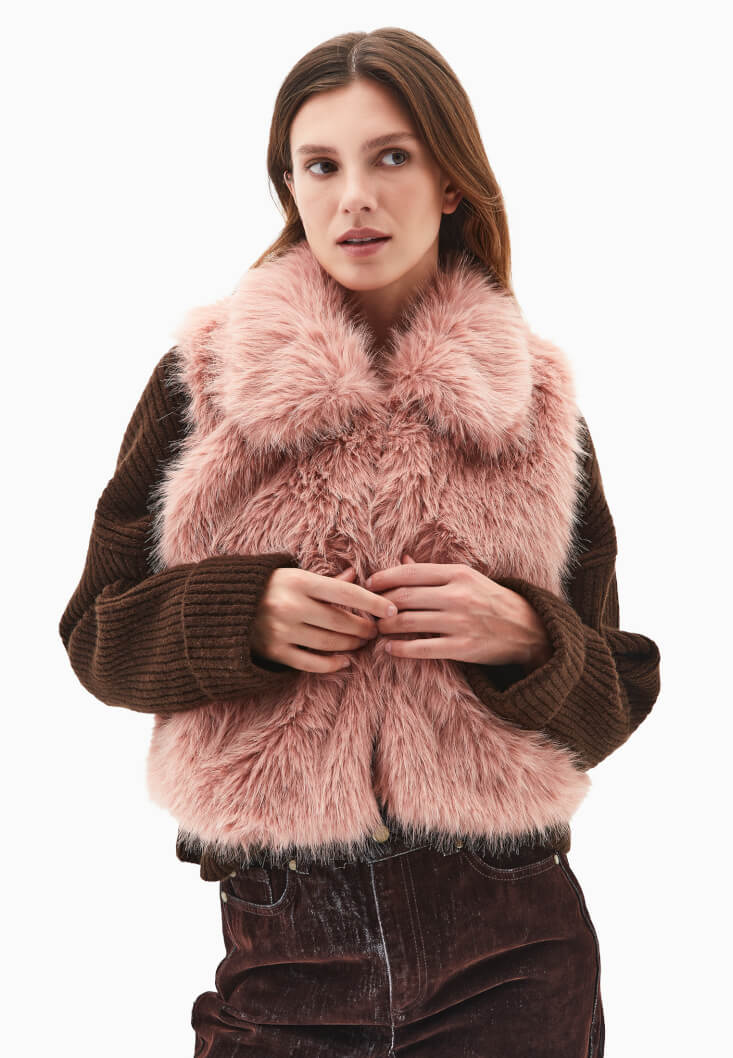 Yumuşacık dokusuyla öne çıkan bu vegan kürk yelek, stilinize hem sıcaklık hem de lüks bir hava katar. %100 hayvan dostu yapısıyla doğaya duyarlı bir seçim sunarken, modern görünümü sayesinde birçok stile uyum sağlar.