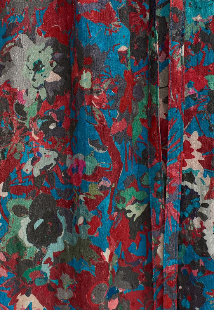 Çok Renkli Volan Detaylı Desenli Midi Elbise